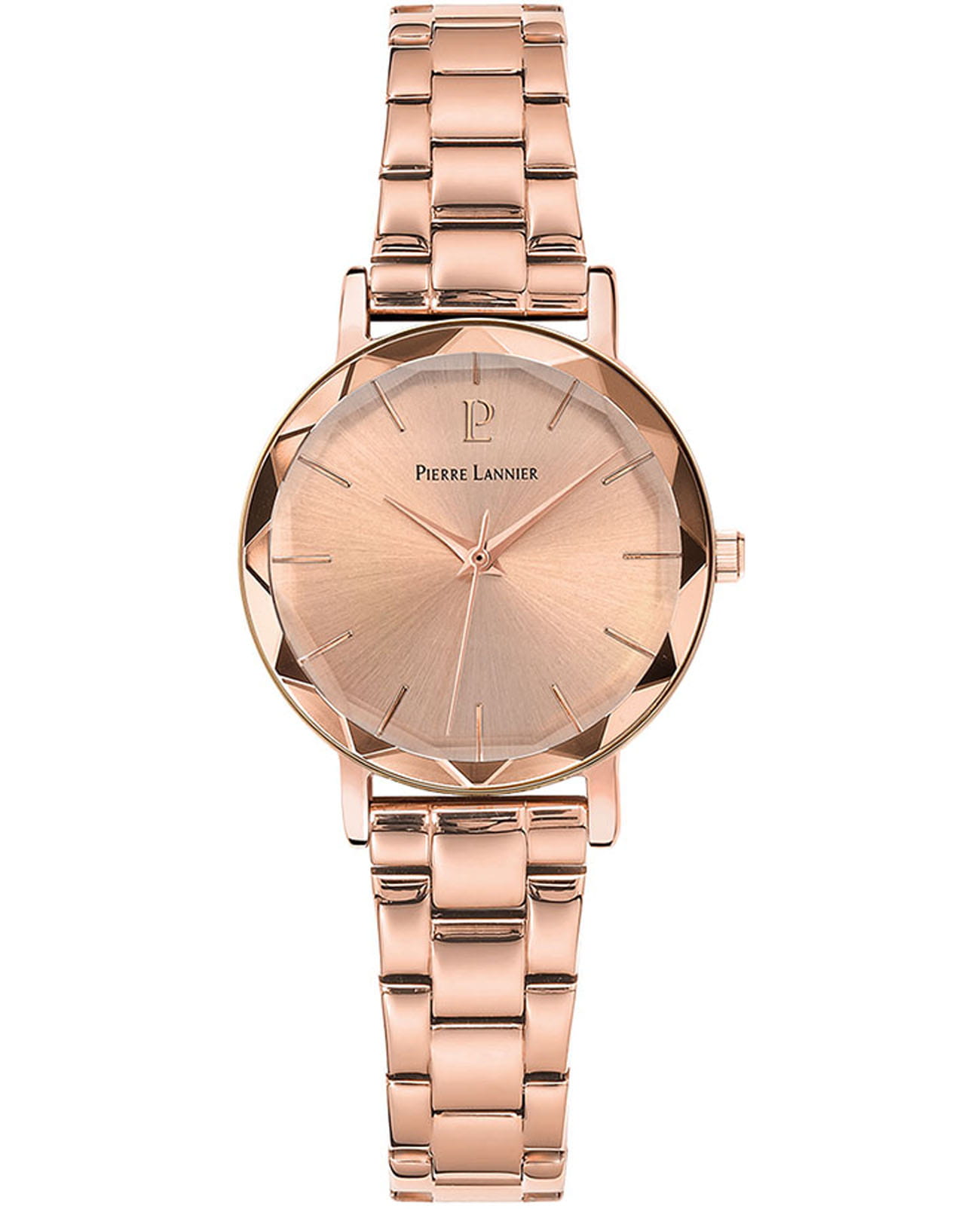 Женские кварцевые часы Pierre Lannier Multiples 012P958. Центральные часовая,минутная и секундная стрелки. Золотистый циферблат. Круглый корпус выполнен из полированной нержавеющей стали с фактурой по безелюБезельВнешний ободок, закрепляющий стекло. В спортивных часах так называется поворотное кольцо с делениями на циферблате, выполняет роль таймера – замеряет отрезки времени на шкале. Неподвижный безель – элемент декора. Однонаправленно вращающийся безель на дайверских часах позволяет фиксировать моменты погружения и выныривания на поверхность. с IP-покрытиемIP-покрытиеМетод ионного напыления. Демонстрирует повышенную устойчивость к истиранию, окислению и химическим веществам. Под воздействием высокого давления и температуры около 1500°C молекулы металла надёжно соединяются с частицами корпуса часов.. Стальной браслет на раскладная застёжкаРаскладная застёжкаТакой тип застёжки используется только на браслетах из металла. Она никогда не раскрывается полностью, происходит разделение на 2 и более частей. Раскладывающая застёжка снизит вероятность потери часов к минимуму.. Фасетчатое минеральное стеклоМинеральное стеклоМинеральное стекло представляет собой искусственно выращенный минерал кварца. Такое стекло отличается особой устойчивостью к повреждениям и царапинам. Уступает по некоторым качествам сапфировому стеклу., устойчивое к мелким механическим повреждениям. Водостойкость: 50 метров, позволит защитить корпус от случайных брызг или капель дождя.