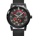 Мужские механические часы с автоподзаводом Pierre Lannier Automatic 321C438. Минеральное стеклоМинеральное стеклоМинеральное стекло представляет собой искусственно выращенный минерал кварца. Такое стекло отличается особой устойчивостью к повреждениям и царапинам. Уступает по некоторым качествам сапфировому стеклу. устойчивое к мелким механическим повреждениям. Центральные часовая, минутная и секундная стрелки. Корпус и браслет выполнены из нержавеющей стали с IP-покрытиемIP-покрытиеМетод ионного напыления. Демонстрирует повышенную устойчивость к истиранию, окислению и химическим веществам. Под воздействием высокого давления и температуры около 1500°C молекулы металла надёжно соединяются с частицами корпуса часов.. Водостойкость: 50 метров, позволит защитить корпус от случайных брызг или капель дождя. Стрелки с люминесцентным покрытиемЛюминесцентное покрытиеПозволяет считывать показания времени в темноте. Производители наносят на стрелки, часовые индексы, безель или поверхность циферблата светонакопительный состав, дающий холодное свечение.. Черный скелетонизированный циферблат. Браслет на раскладной застёжкеРаскладная застёжкаТакой тип застёжки используется только на браслетах из металла. Она никогда не раскрывается полностью, происходит разделение на 2 и более частей. Раскладывающая застёжка снизит вероятность потери часов к минимуму.. Прозрачная задняя крышка.
