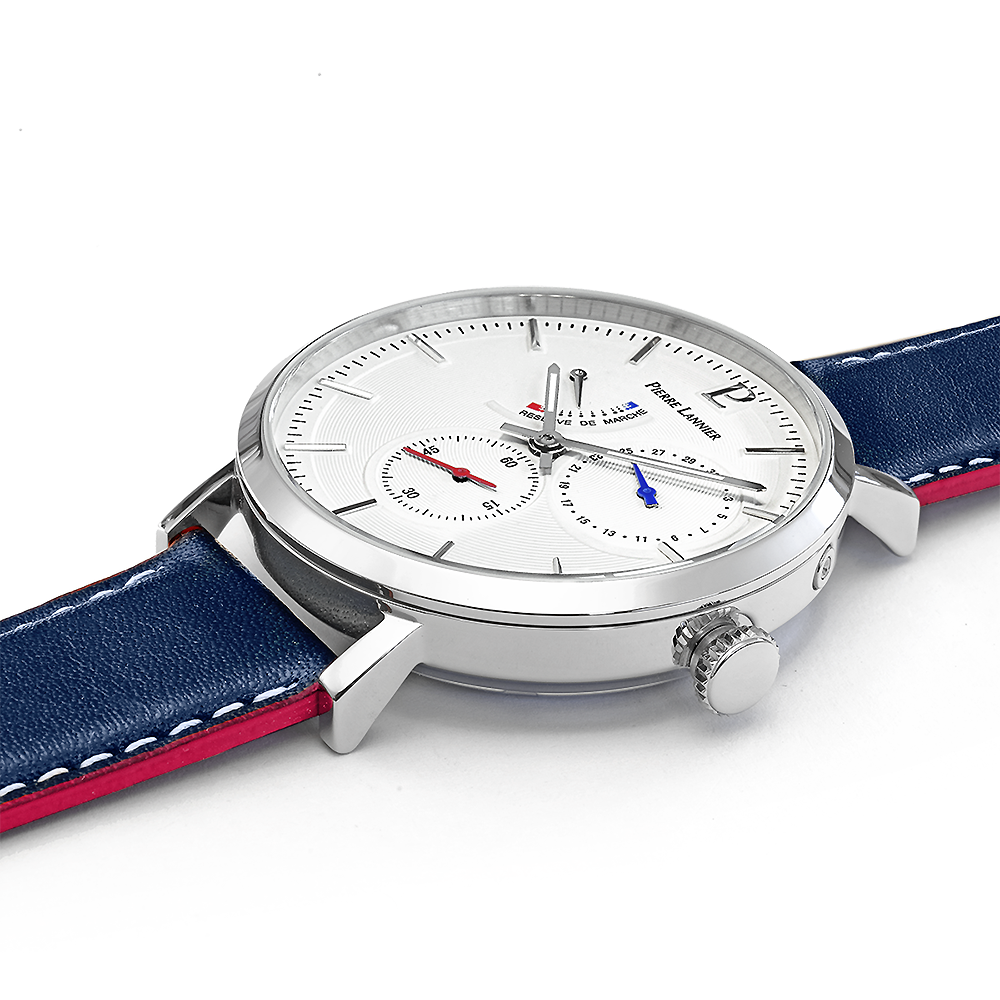Мужские механические часы с автоподзаводом Pierre Lannier Evidence 327B106. Минеральное стеклоМинеральное стеклоМинеральное стекло представляет собой искусственно выращенный минерал кварца. Такое стекло отличается особой устойчивостью к повреждениям и царапинам. Уступает по некоторым качествам сапфировому стеклу. устойчивое к мелким механическим повреждениям. Центральные часовая и минутная стрелки, секундная стрелка вынесена на малый циферблат. Отображение даты в малом циферблате. Ретроградный индикатор запаса хода. Корпус выполнен из нержавеющей стали. Водостойкость: 50 метров, позволит защитить корпус от случайных брызг или капель дождя. Кожаный ремешок на стандартной застёжке. Стрелки с люминесцентным покрытиемЛюминесцентное покрытиеПозволяет считывать показания времени в темноте. Производители наносят на стрелки, часовые индексы, безель или поверхность циферблата светонакопительный состав, дающий холодное свечение..