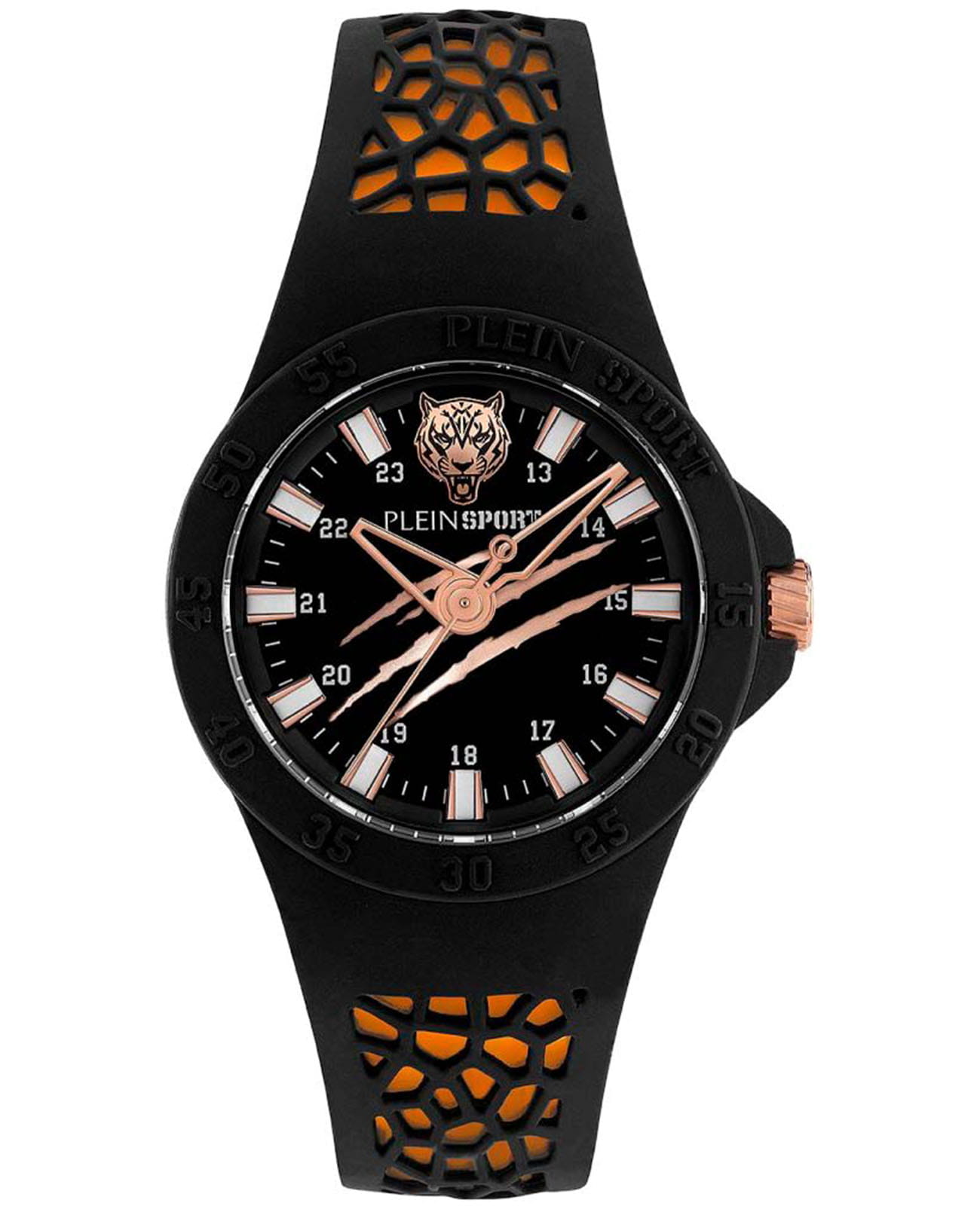 Немецкие кварцевые часы унисекс с минеральным стекломМинеральное стеклоМинеральное стекло представляет собой искусственно выращенный минерал кварца. Такое стекло отличается особой устойчивостью к повреждениям и царапинам. Уступает по некоторым качествам сапфировому стеклу. Plein Sport Thunderstorm Chrono PSBBA0123, кварцевый механизм с высокой точностью. Класс водозащиты: 50 метров, позволит защитить корпус от случайных брызг или капель дождя. Часы с круглым корпусом из поликарбоната с силиконовым покрытием. Циферблат дополнен паттерном ''след когтей''. Метки в виде штрихов, фирменное лого в виде тигра в положении 12 часов. Рифленая заводная головка с защитой. Удобный силиконовый ремешок с классической застежкой.