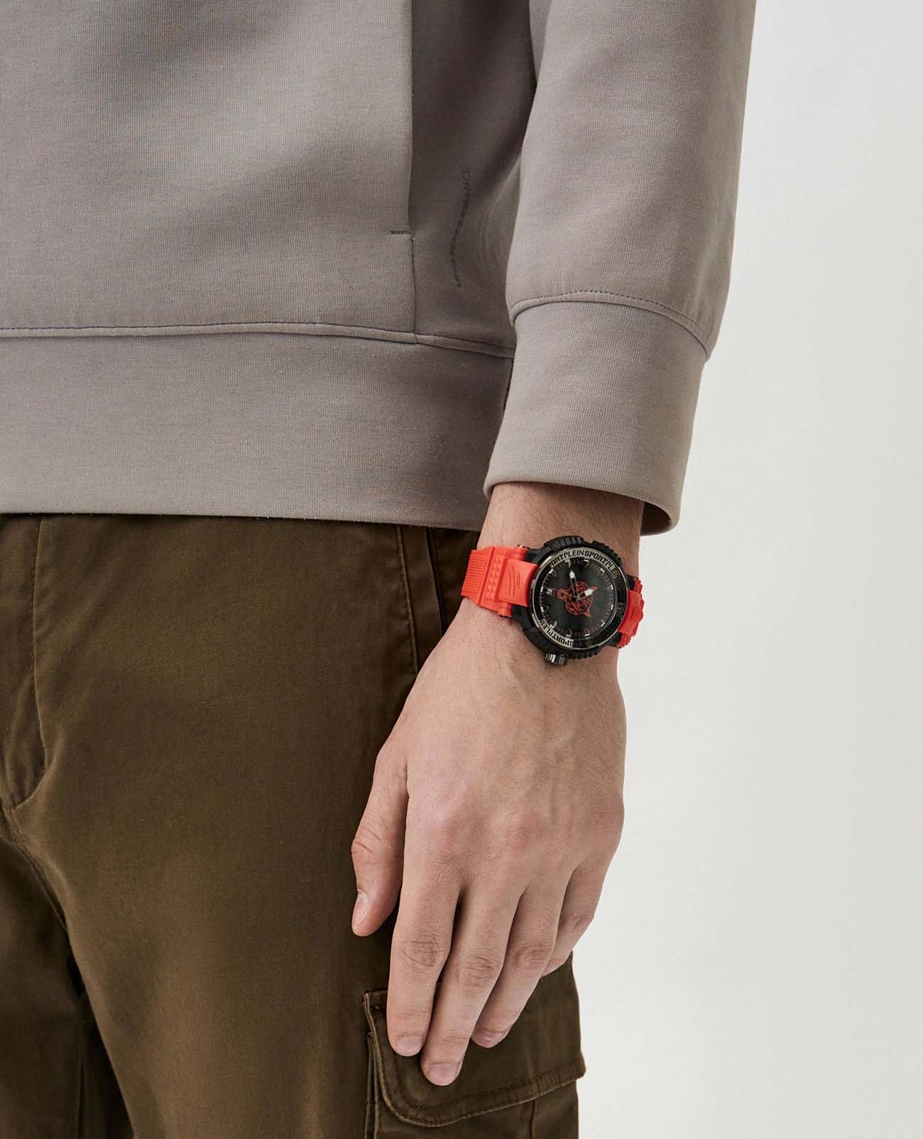 Силиконовый ремешок на стандартной застёжке обеспечивает комфортное ношение. Окошко даты расположено в положении «шесть часов», что позволяет легко отслеживать текущую дату.