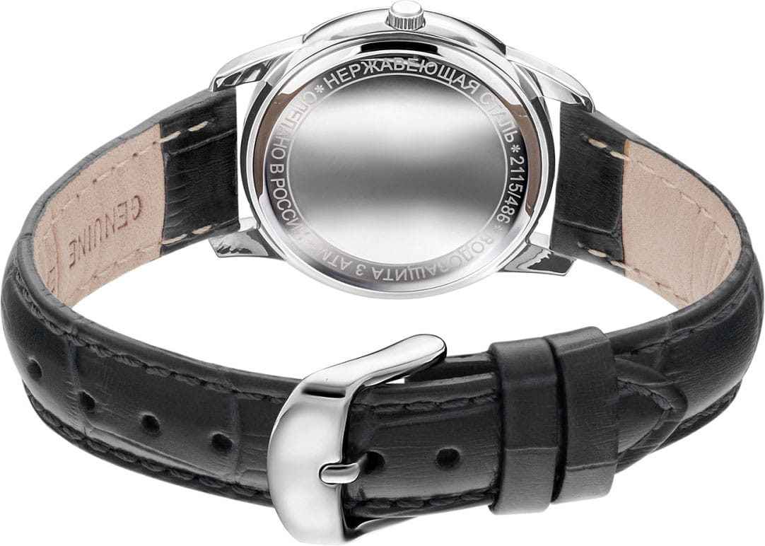Poljot 2115.4861048 — утончённые женские часы, выполненные в минималистичном классическом стиле, где каждая деталь подчеркивает чистоту формы и изящество линий. Корпус из нержавеющей стали гармонично сочетается с циферблатом, украшенным аккуратными индексами и тонкими стрелками с люминесцентным покрытиемЛюминесцентное покрытиеПозволяет считывать показания времени в темноте. Производители наносят на стрелки, часовые индексы, безель или поверхность циферблата светонакопительный состав, дающий холодное свечение., создающими ощущение лёгкости и баланса. Надёжный кварцевый механизм обеспечивает стабильную точность, а окно даты на позиции «6 часов» добавляет функциональности без нарушения эстетики. Прочное минеральное стеклоМинеральное стеклоМинеральное стекло представляет собой искусственно выращенный минерал кварца. Такое стекло отличается особой устойчивостью к повреждениям и царапинам. Уступает по некоторым качествам сапфировому стеклу. защищает поверхность циферблата от царапин. Классический ремешок из натуральной кожи с фактурой под крокодила придаёт модели сдержанную элегантность. Poljot — это воплощение простоты, стиля и надёжности, идеальный выбор для женщины, предпочитающей чистую классику в современном исполнении.