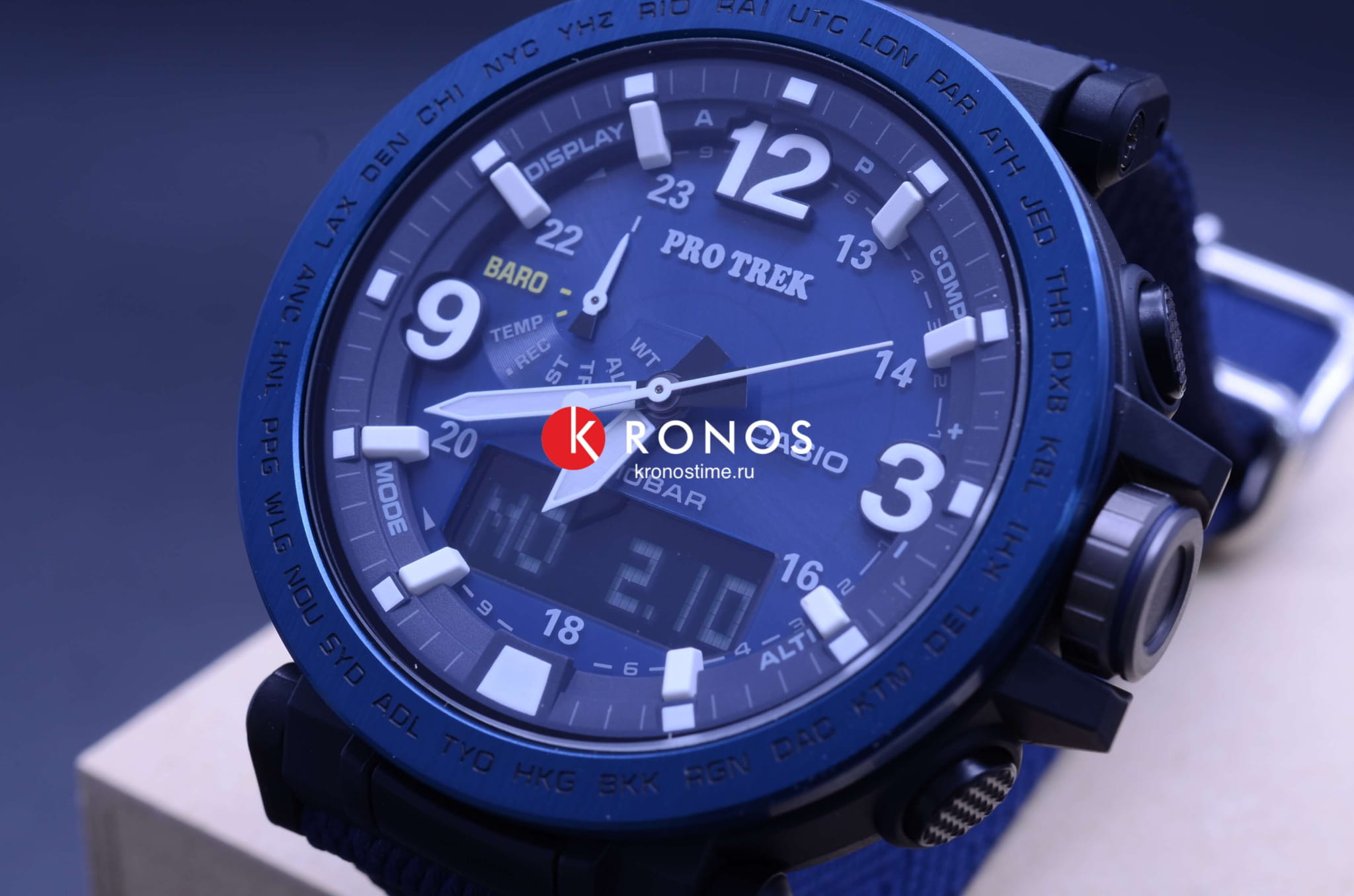 Это идеальный вариант для людей, неравнодушных к туристическим походам и дальним странствиям. Наручные часы в синем исполнении оснащены всем необходимым, чтобы путешествие прошло максимально легко: цифровой компас, барометр, высотомер с памятью данных, термометр -10°C /+60°C, будильник, UTCUTCВсемирное кординационное время, не имеющее привязки к географическому положению Гринвича, основывается на атомном отсчёте времени. Регулировка времени осуществляется более точно, чем устаревшее GMT.