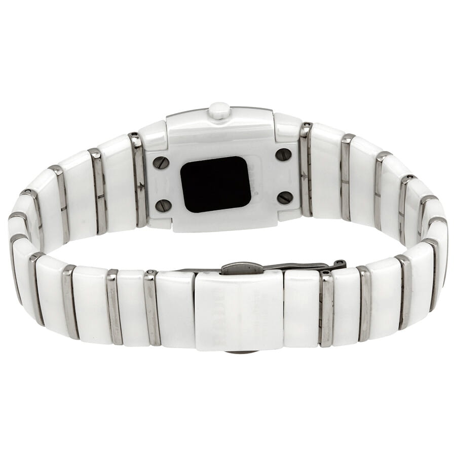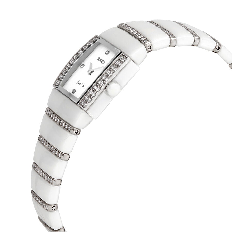 Часы Rado Sintra R13633709, произведение искусства и технологическое чудо, станут прекрасным дополнением к коллекции. Эти швейцарские часы оснащены кварцевым механизмом и тремя стрелками, заключенным в корпус из керамики. Браслет изготовлен из высокотехнологичной керамикиВысокотехнологичная керамикаИнновационный запатентованный Rado материал с гладкой или матовой поверхностью. Керамика за счёт кристаллической структуры обладает повышенной устойчивостью от возникновения царапин. Материал способен принимать температуру тела человека, обеспечивая невероятный комфорт при ношении.. Часы украшены брилиантами. Сапфировое стеклоСапфировое стеклоПрочный и надёжный материал из кристалла сапфира синтетического происхождения, характеризующийся особой твёрдостью и устойчивостью к царапинам и повреждениям. устойчивое к появлению царапин, обладающее высокой прозрачностью. Класс водозащиты: 30 метров, позволит защитить корпус от случайных брызг или капель дождя.