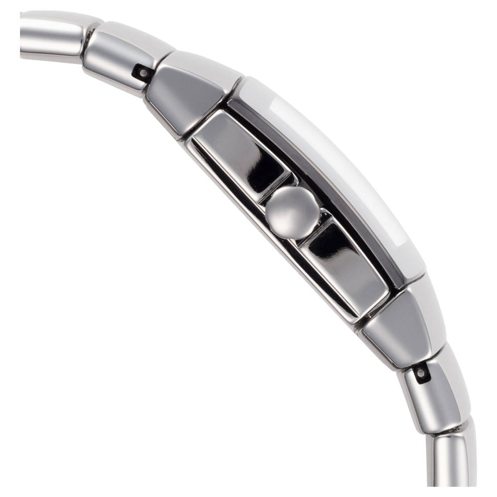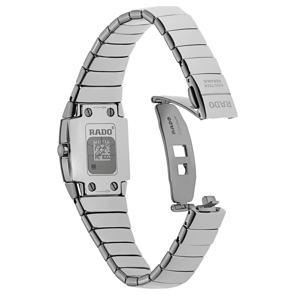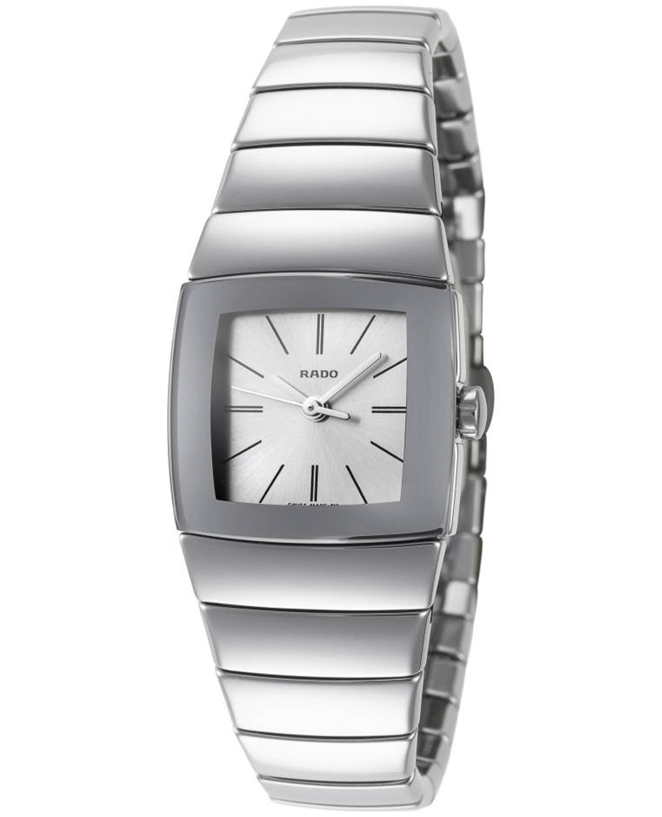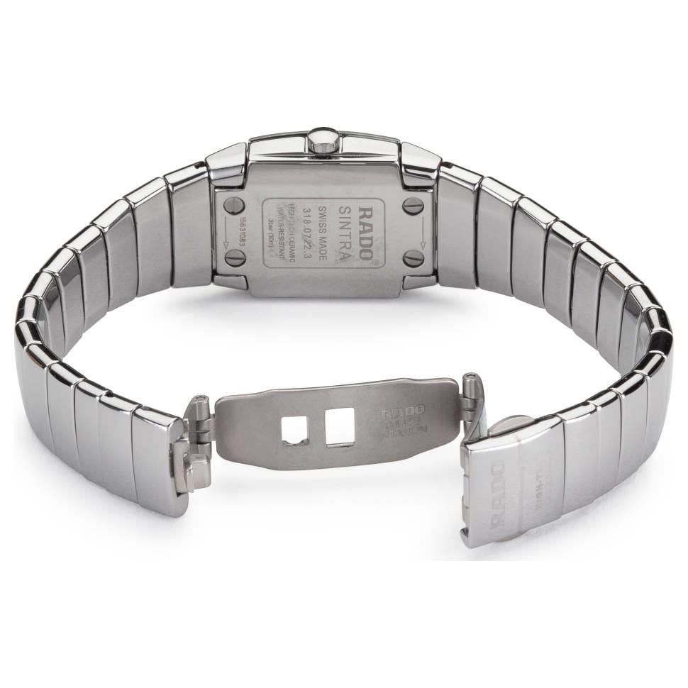 Часы Rado Sintra R13722122, произведение искусства и технологическое чудо, станут прекрасным дополнением к коллекции. Эти швейцарские часы оснащены кварцевым механизмом. Корпус  изготовлен из высокотехнологичной керамикиВысокотехнологичная керамикаИнновационный запатентованный Rado материал с гладкой или матовой поверхностью. Керамика за счёт кристаллической структуры обладает повышенной устойчивостью от возникновения царапин. Материал способен принимать температуру тела человека, обеспечивая невероятный комфорт при ношении.. Браслет изготовлен из CeramosCeramosМатериал являет собой инновационное сочетание высокотехнологичной керамики и сплава металла. Он объединяет керамическую устойчивость к царапинам и металлический роскошный блеск. . Сапфировое стеклоСапфировое стеклоПрочный и надёжный материал из кристалла сапфира синтетического происхождения, характеризующийся особой твёрдостью и устойчивостью к царапинам и повреждениям. устойчивое к появлению царапин, обладающее высокой прозрачностью. Класс водозащиты: 30 метров, позволит защитить корпус от случайных брызг или капель дождя.