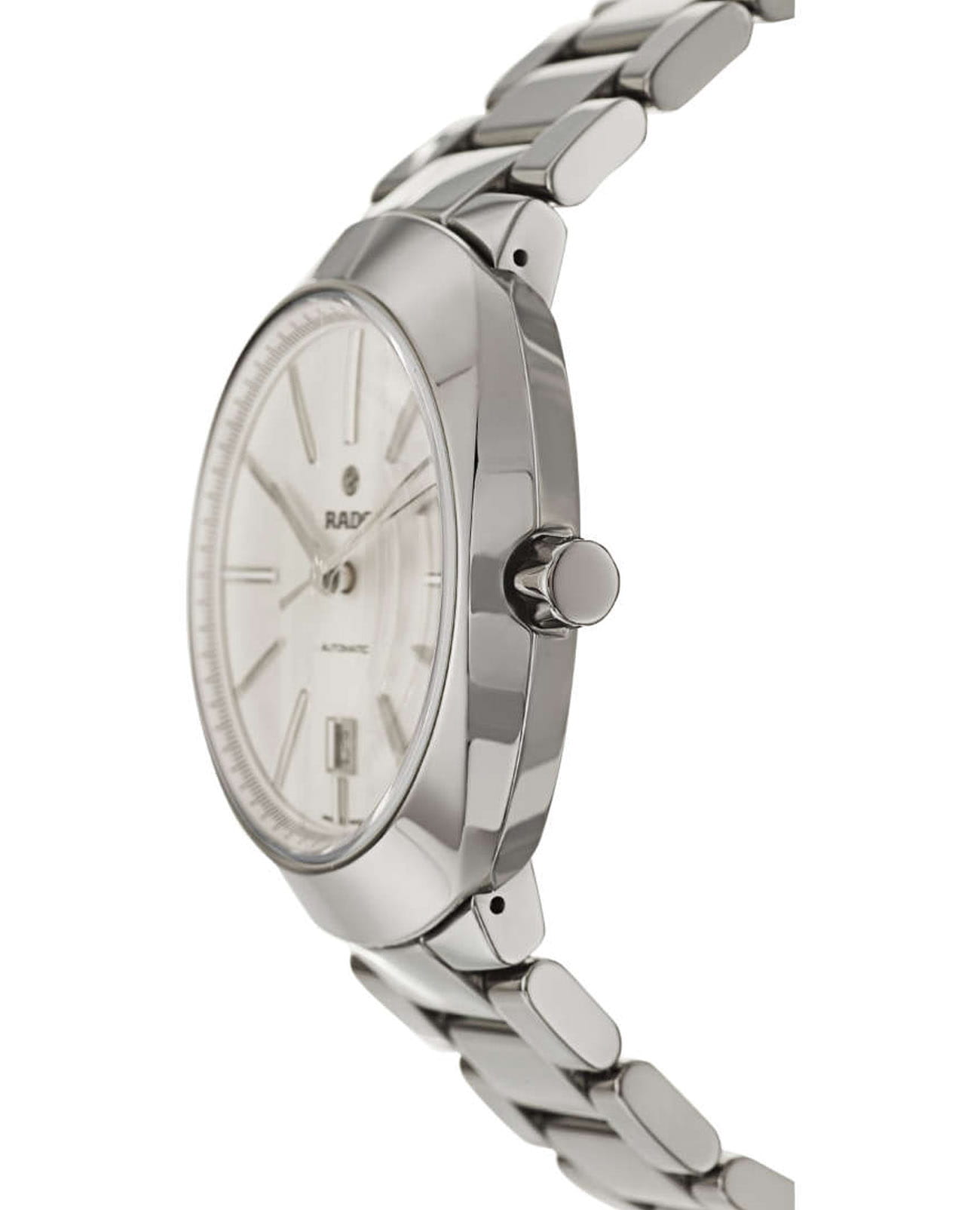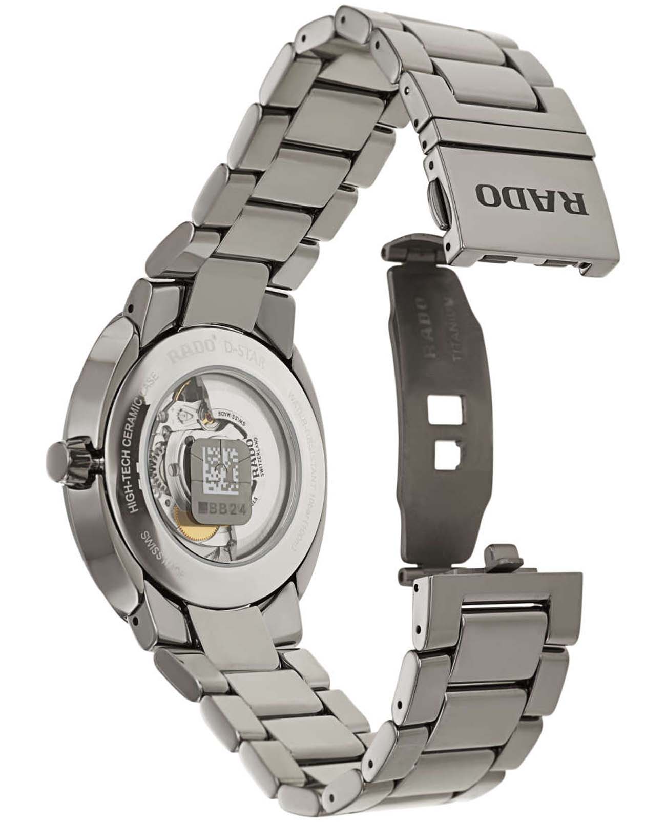 Мужские механические швейцарские часы Rado D-Star R15760102. Сапфировое стеклоСапфировое стеклоПрочный и надёжный материал из кристалла сапфира синтетического происхождения, характеризующийся особой твёрдостью и устойчивостью к царапинам и повреждениям. устойчивое к мелким механическим повреждениям. Корпус часов изготовлен из высокотехнологичной керамикиВысокотехнологичная керамикаИнновационный запатентованный Rado материал с гладкой или матовой поверхностью. Керамика за счёт кристаллической структуры обладает повышенной устойчивостью от возникновения царапин. Материал способен принимать температуру тела человека, обеспечивая невероятный комфорт при ношении.. Окошко даты находится в положении 6 часов. Класс водозащиты: 100 метров, позволит плавать, нырять и заниматься другими водными видами спорта. Браслет из высокотехнологичной керамикиВысокотехнологичная керамикаИнновационный запатентованный Rado материал с гладкой или матовой поверхностью. Керамика за счёт кристаллической структуры обладает повышенной устойчивостью от возникновения царапин. Материал способен принимать температуру тела человека, обеспечивая невероятный комфорт при ношении. на раскладной застёжкеРаскладная застёжкаТакой тип застёжки используется только на браслетах из металла. Она никогда не раскрывается полностью, происходит разделение на 2 и более частей. Раскладывающая застёжка снизит вероятность потери часов к минимуму..