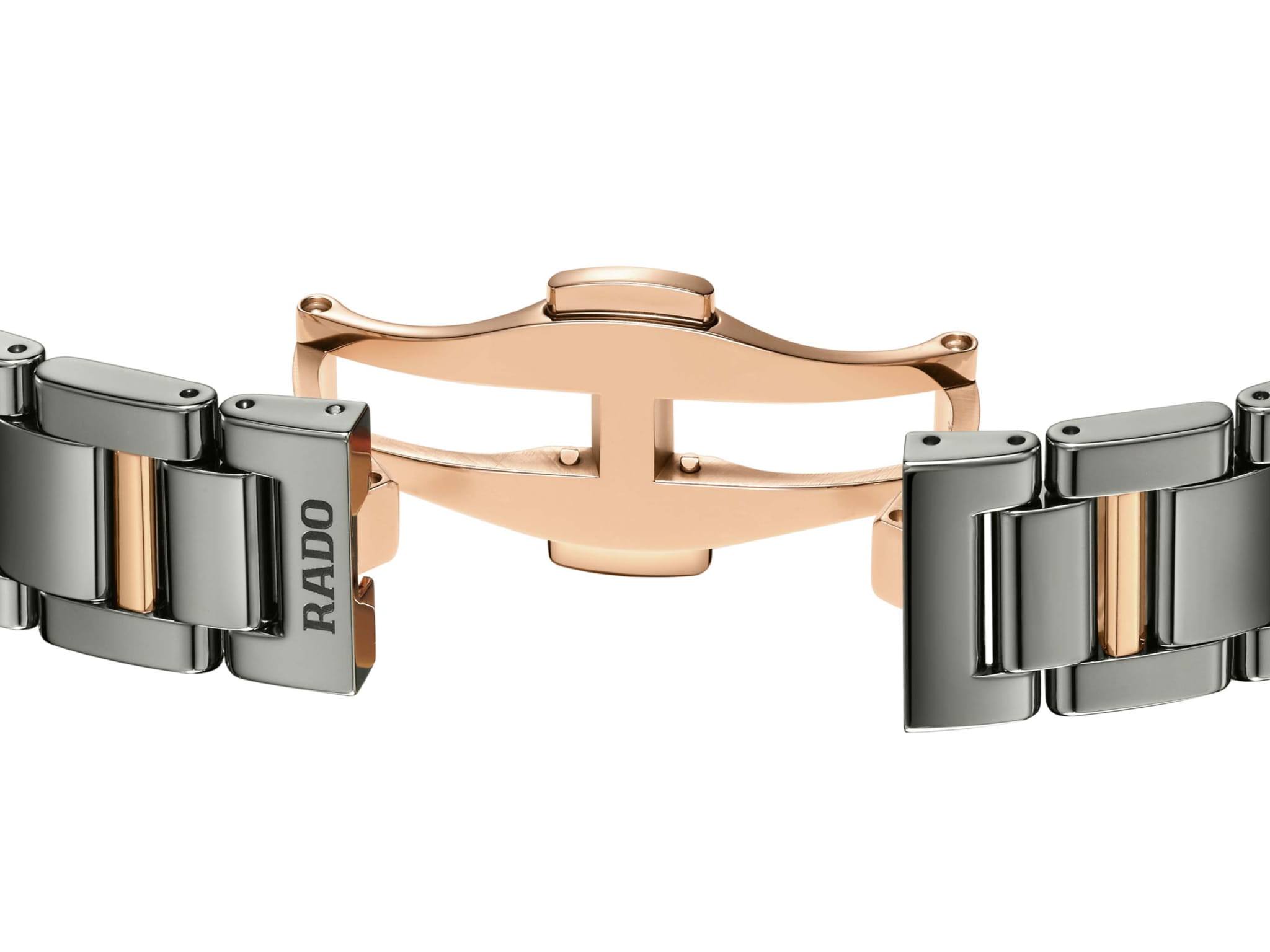 Женские кварцевые часы Rado — это изысканный аксессуар с современным дизайном. Корпус диаметром 31 мм выполнен из высокотехнологичной керамикиВысокотехнологичная керамикаИнновационный запатентованный Rado материал с гладкой или матовой поверхностью. Керамика за счёт кристаллической структуры обладает повышенной устойчивостью от возникновения царапин. Материал способен принимать температуру тела человека, обеспечивая невероятный комфорт при ношении. и нержавеющей стали с PVD-покрытиемPVDУльтратонкое покрытие наносится в технике вакуумного напыления, сочетает в себе нитрид титана особой прочности со слоем золота или оксида хрома. Несёт в себе декоративную или защитную функцию. розового золота. Циферблат чёрного цвета оформлен аналоговым дисплеем. Циферблат защищён выпуклым сапфировым стекломСапфировое стеклоПрочный и надёжный материал из кристалла сапфира синтетического происхождения, характеризующийся особой твёрдостью и устойчивостью к царапинам и повреждениям.. Окошко даты расположено в положении 3 часов. Механизм — кварцевый. Часы оснащены браслетом из комбинации керамики и стали с PVD-покрытиемPVDУльтратонкое покрытие наносится в технике вакуумного напыления, сочетает в себе нитрид титана особой прочности со слоем золота или оксида хрома. Несёт в себе декоративную или защитную функцию. и застёжкой «бабочка» с кнопкамиЗастёжка "бабочка"Такой вид застёжки дополняется предохранителями, помогающими избежать случайного раскрытия браслета. Обладают изящным исполнением. . Водонепроницаемость 50 м позволяет использовать часы в повседневных условиях. Гарантия — 5 лет на механизм, 2 года на изделие. Идеальный выбор для тех, кто ценит стиль, качество и универсальность.