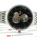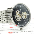 Лаконичный чёрный циферблат создает невероятный контраст с холодным блеском нержавеющей стали 316L, Часы скелетоны привлекают необычным браслетом, состоящим из звеньев разного размера. Модель оснащена автоматическим калибром ETA C07.631 с увеличенным запасом хода до 80 часов, за его работой можно понаблюдать сквозь прозрачную заднюю крышку и 3 окошка в циферблате. Сапфировое стекло с антибликовой обработкой устойчиво к возникновению царапин. Водостойкость 5 бар. . Диаметр корпуса: 41 мм.