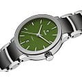 Аксессуар с зелёным циферблатом являет собой сочетание классической красоты и современного дизайна, отражающего минимализм. Его безупречная работа обеспечивается за счёт швейцарского автоматического механизма ETA 2671 с 38-часовым запасом хода. Прозрачная задняя крышка позволяет прикоснуться к часовому искусству и понаблюдать за движением деталей. Сапфировое стекло. Браслет из стали 316L и высокотехнологичной плазменной керамикиВысокотехнологичная плазменная керамикаИнновационный материал, технология запатентована. Выплавление керамики осуществляется в печи при 20 000 °C, белоснежный материал под воздействием ультравысокой температуры приобретает уникальный блеск, присущий металлам.. Водонепроницаемость 30 метров. . Окошко даты. Диаметр корпуса: 28 мм.