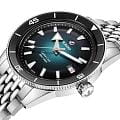 Captain Cook Automatic — это гармоничное сочетание точности и стиля, созданное для тех, кто ценит надёжность в любых условиях. Полированный корпус диаметром 39 мм выполнен из нержавеющей стали и дополнен вращающимся безелем из того же материала с чёрной керамической вставкой и белыми маркерами. Треугольный индекс в положении 12 часов выделен слоем люминесцентного покрытияЛюминесцентное покрытиеПозволяет считывать показания времени в темноте. Производители наносят на стрелки, часовые индексы, безель или поверхность циферблата светонакопительный состав, дающий холодное свечение. Super-LumiNova®, что обеспечивает отличную читаемость даже в темноте. Часы защищены сапфировым стекломСапфировое стеклоПрочный и надёжный материал из кристалла сапфира синтетического происхождения, характеризующийся особой твёрдостью и устойчивостью к царапинам и повреждениям. коробчатой формы, изготовленным при температуре свыше 2000 °C и покрытым антибликовым слоем с обеих сторон. Это обеспечивает исключительную прозрачность и устойчивость к царапинам — по твёрдости оно уступает только алмазу. Сердце модели — калибр R763 с автоподзаводом, разработанный для максимальной надёжности. Механизм имеет 25 драгоценных камней, регулируется в пяти положениях и оснащён антимагнитной спиралью Nivachron™Nivachron™Специально разработанный инновационный сплав Nivachron™ повышает устойчивость часов к воздействию магнитных полей., повышающей стабильность хода. Запас хода составляет внушительные 80 часов, что делает часы идеальными для активного образа жизни. Циферблат с градиентом от чёрного к бирюзовому украшен индексами и стрелками из рутениевого цвета, покрытыми белым люминесцентным составом Super-LumiNova® для отличной читаемости в темноте. Окошко даты расположено в положении 3 часов, а на задней крышке выгравирован символический якорь — знак принадлежности к коллекции Captain Cook. Браслет в стиле «рисовые зёрна» выполнен из комбинированной стали с полированной и матовой отделкой и закрывается трёхсгибной застёжкой из нержавеющей стали, обеспечивающей комфорт и уверенную фиксацию на запястье. Часы водонепроницаемы до 300 метров (), что делает их готовыми к любым приключениям — будь то подводное плавание или деловая встреча. Captain Cook Automatic сочетает в себе швейцарское мастерство, современные технологии и элегантный дизайн, становясь универсальным аксессуаром для любого случая.