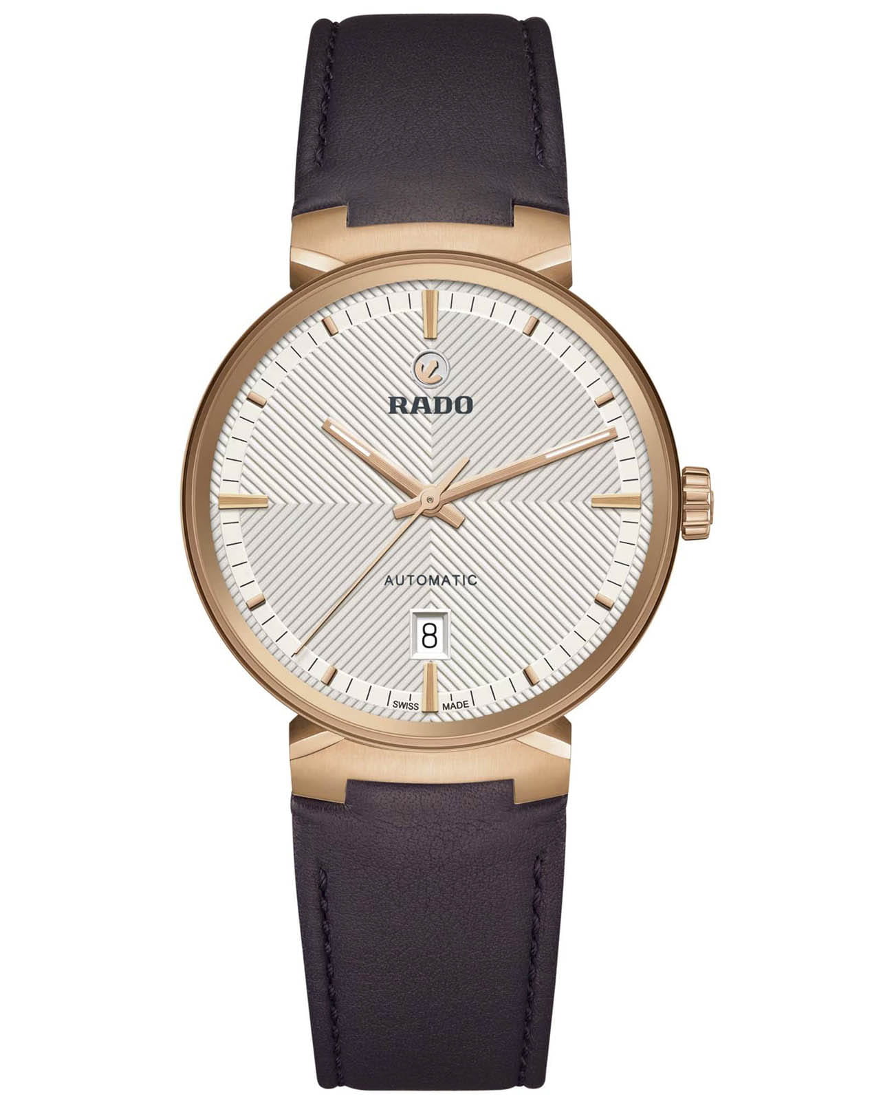 Универсальные механические часы с автоподзаводом Rado из коллекции Florence — это воплощение швейцарской точности и элегантности. Корпус диаметром 39 мм и толщиной 11 мм выполнен из нержавеющей стали с PVD-покрытиемPVDУльтратонкое покрытие наносится в технике вакуумного напыления, сочетает в себе нитрид титана особой прочности со слоем золота или оксида хрома. Несёт в себе декоративную или защитную функцию. розового золота. Циферблат бежевого цвета с рельефным узором оформлен накладными индексами и подвижным якорем бренда — символом Rado. Циферблат защищён сапфировым стекломСапфировое стеклоПрочный и надёжный материал из кристалла сапфира синтетического происхождения, характеризующийся особой твёрдостью и устойчивостью к царапинам и повреждениям. с антибликовым покрытиемАнтибликовое покрытиеСлой оксида металла в 0,13-0,3 микрон, благодаря которому стекло часов не бликует и не отражает свет. Антибликовое покрытие уменьшает отражение света в 10 раз, обеспечивая отличную читаемость показателей циферблата., которое одновременно выполняет функцию безеляБезельВнешний ободок, закрепляющий стекло. В спортивных часах так называется поворотное кольцо с делениями на циферблате, выполняет роль таймера – замеряет отрезки времени на шкале. Неподвижный безель – элемент декора. Однонаправленно вращающийся безель на дайверских часах позволяет фиксировать моменты погружения и выныривания на поверхность.. Механизм — автоматический калибр R763 с пружиной Nivachron™Nivachron™Специально разработанный инновационный сплав Nivachron™ повышает устойчивость часов к воздействию магнитных полей., отрегулированный в пяти положениях, с запасом хода 80 часов. Окошко даты расположено в положении 3 часов. Завинчивающаяся коронка обеспечивает дополнительную защиту. Часы оснащены кожаным ремешком коричневого цвета и пряжкой из нержавеющей стали с PVD-покрытиемPVDУльтратонкое покрытие наносится в технике вакуумного напыления, сочетает в себе нитрид титана особой прочности со слоем золота или оксида хрома. Несёт в себе декоративную или защитную функцию. розового золота. Водонепроницаемость 50 м позволяет использовать часы в повседневных условиях. Идеальный выбор для тех, кто ценит мастерство, стиль и универсальность.