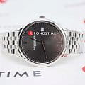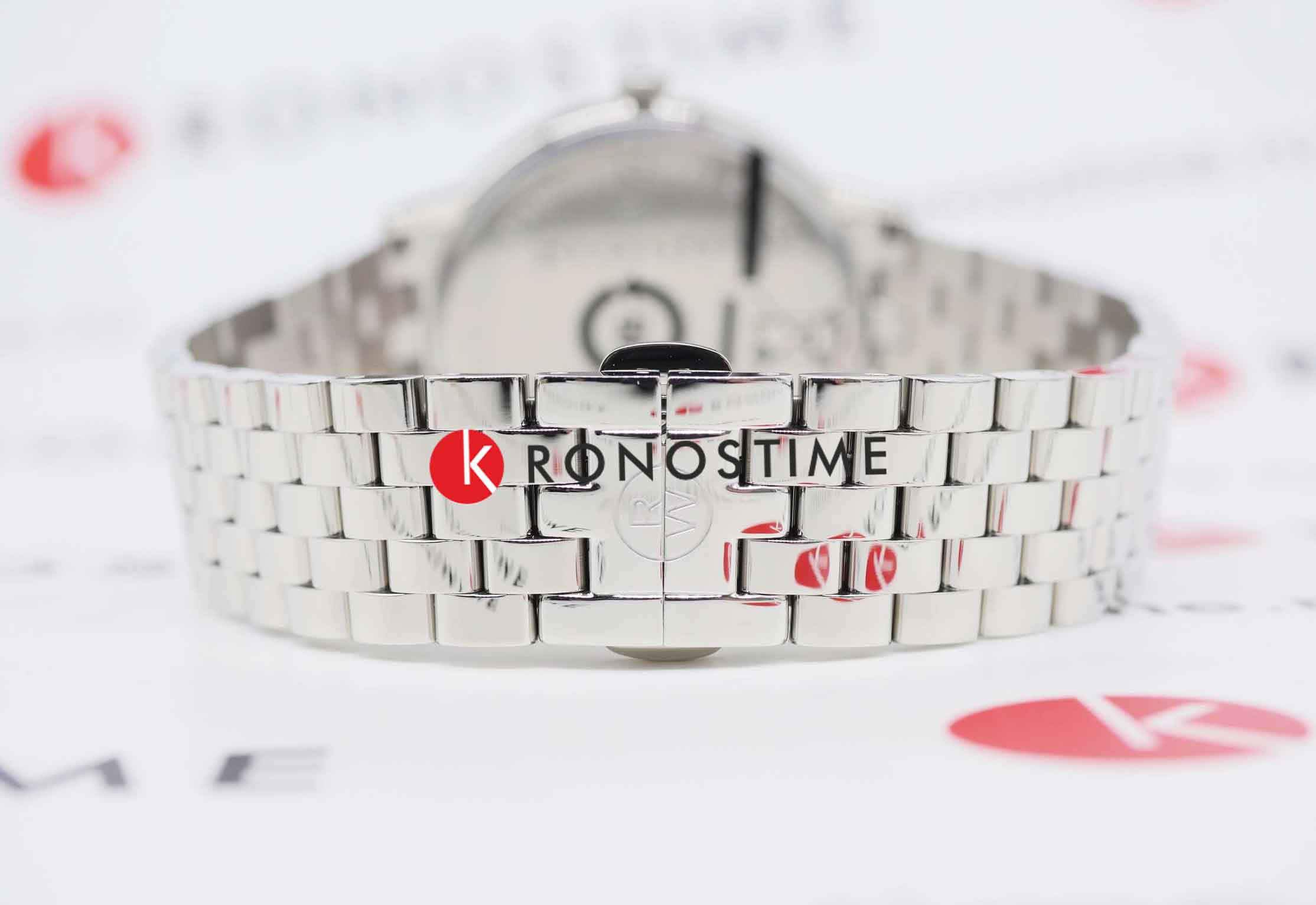 Водозащита до 50 метров позволяет использовать часы в повседневной жизни, включая контакт с водой при мытье рук или дожде. Браслет изготовлен из нержавеющей стали с раскладной застёжкойРаскладная застёжкаТакой тип застёжки используется только на браслетах из металла. Она никогда не раскрывается полностью, происходит разделение на 2 и более частей. Раскладывающая застёжка снизит вероятность потери часов к минимуму., гармонично дополняя классический дизайн модели.