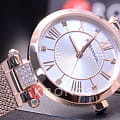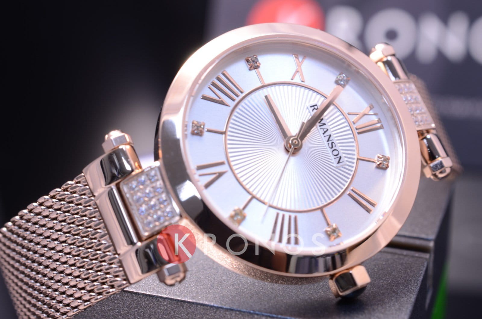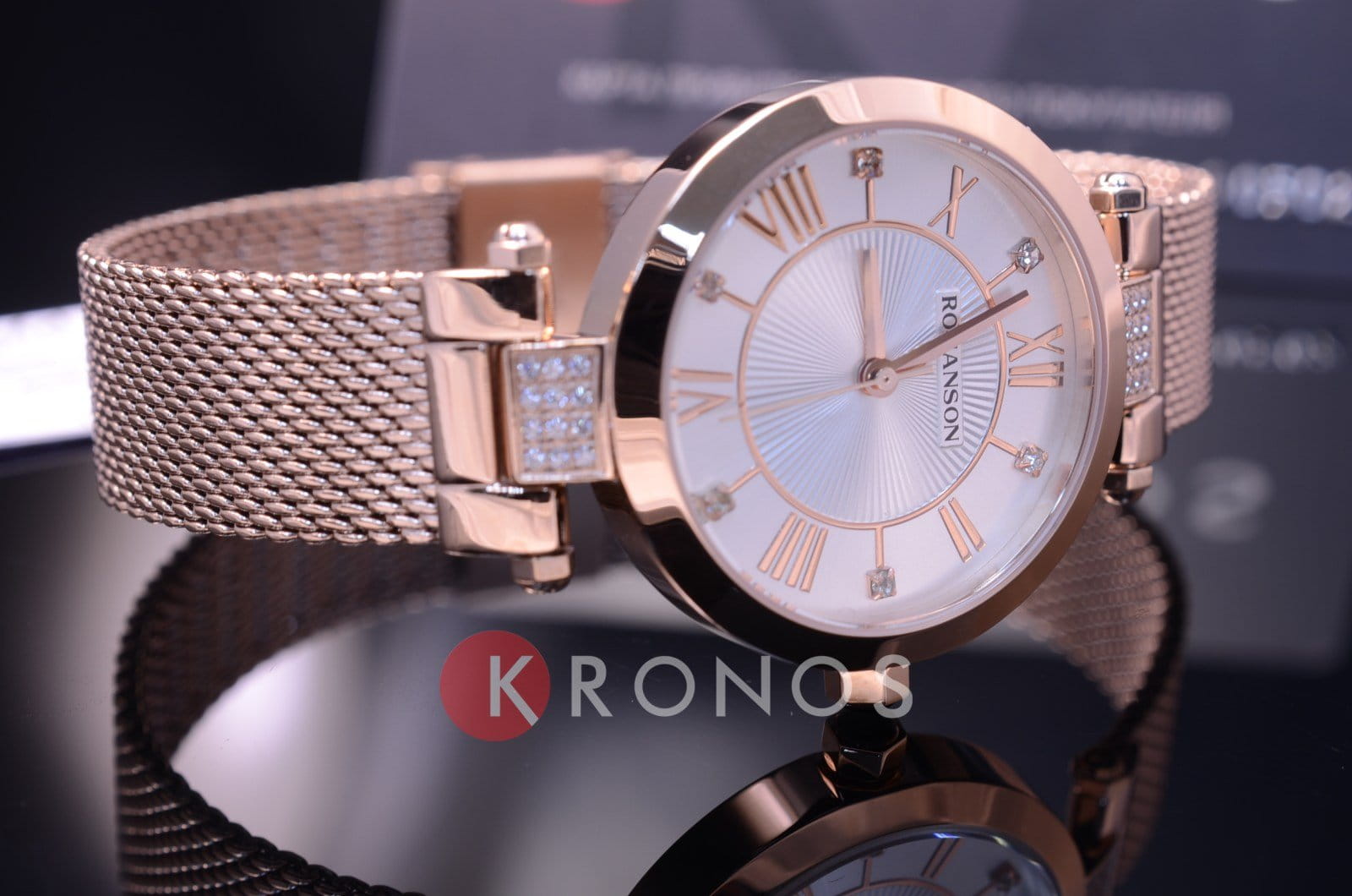Fashion-модель в розово-золотистом цвете декорирована цирконами. Высокую точность хода обеспечивает кварцевый калибр. Минеральное стекло с закаленной поверхностью. Водостойкость до 50 метров. Корпус и браслет плетения Mesh из нержавеющей стали 316L с PVD-покрытиемPVDУльтратонкое покрытие наносится в технике вакуумного напыления, сочетает в себе нитрид титана особой прочности со слоем золота или оксида хрома. Несёт в себе декоративную или защитную функцию..