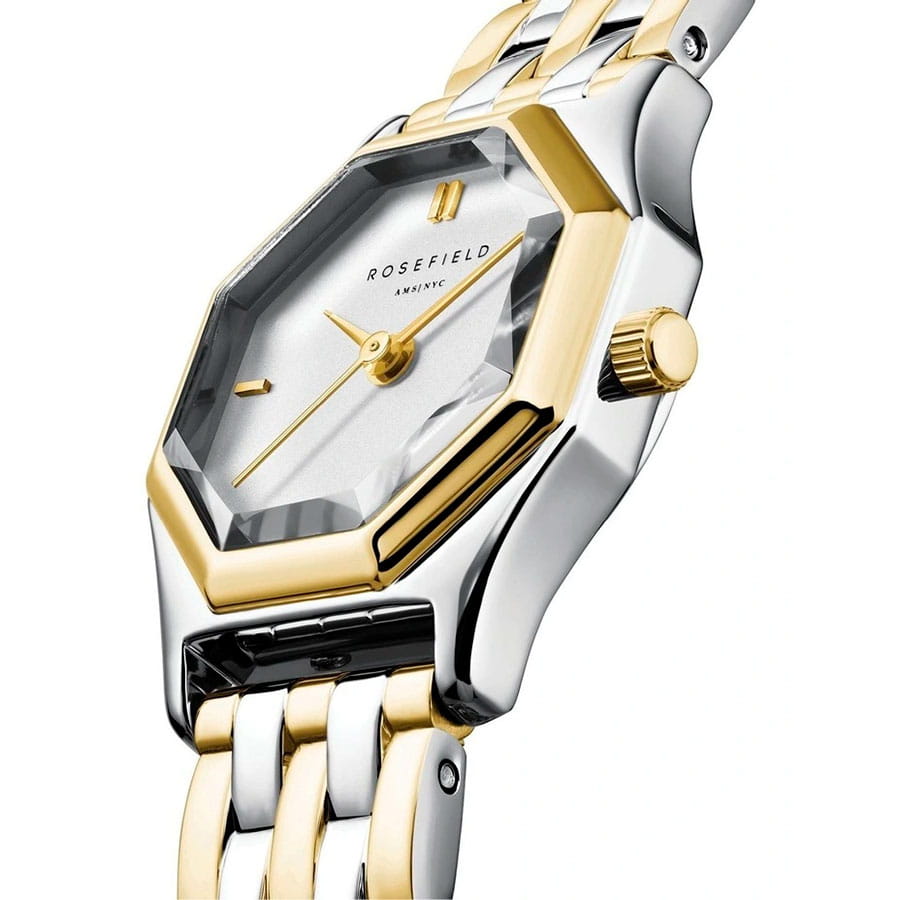 Женские кварцевые часы. Центральные часовая, минутная и секундная стрелки. Белый циферблат. Восьмиугольный корпус выполнен из полированной нержавеющей стали с частичнымIP-покрытиемIP-покрытиеМетод ионного напыления. Демонстрирует повышенную устойчивость к истиранию, окислению и химическим веществам. Под воздействием высокого давления и температуры около 1500°C молекулы металла надёжно соединяются с частицами корпуса часов. цвета желтого золота. Размер корпуса составляет 21,5 х 27,5 мм. Стальной браслет c частичным IP-покрытиемIP-покрытиеМетод ионного напыления. Демонстрирует повышенную устойчивость к истиранию, окислению и химическим веществам. Под воздействием высокого давления и температуры около 1500°C молекулы металла надёжно соединяются с частицами корпуса часов. с ювелирной застежкой. Прочное минеральное стеклоМинеральное стеклоМинеральное стекло представляет собой искусственно выращенный минерал кварца. Такое стекло отличается особой устойчивостью к повреждениям и царапинам. Уступает по некоторым качествам сапфировому стеклу. устойчивое к мелким механическим повреждениям. Водостойкость WR 30 (брызги).