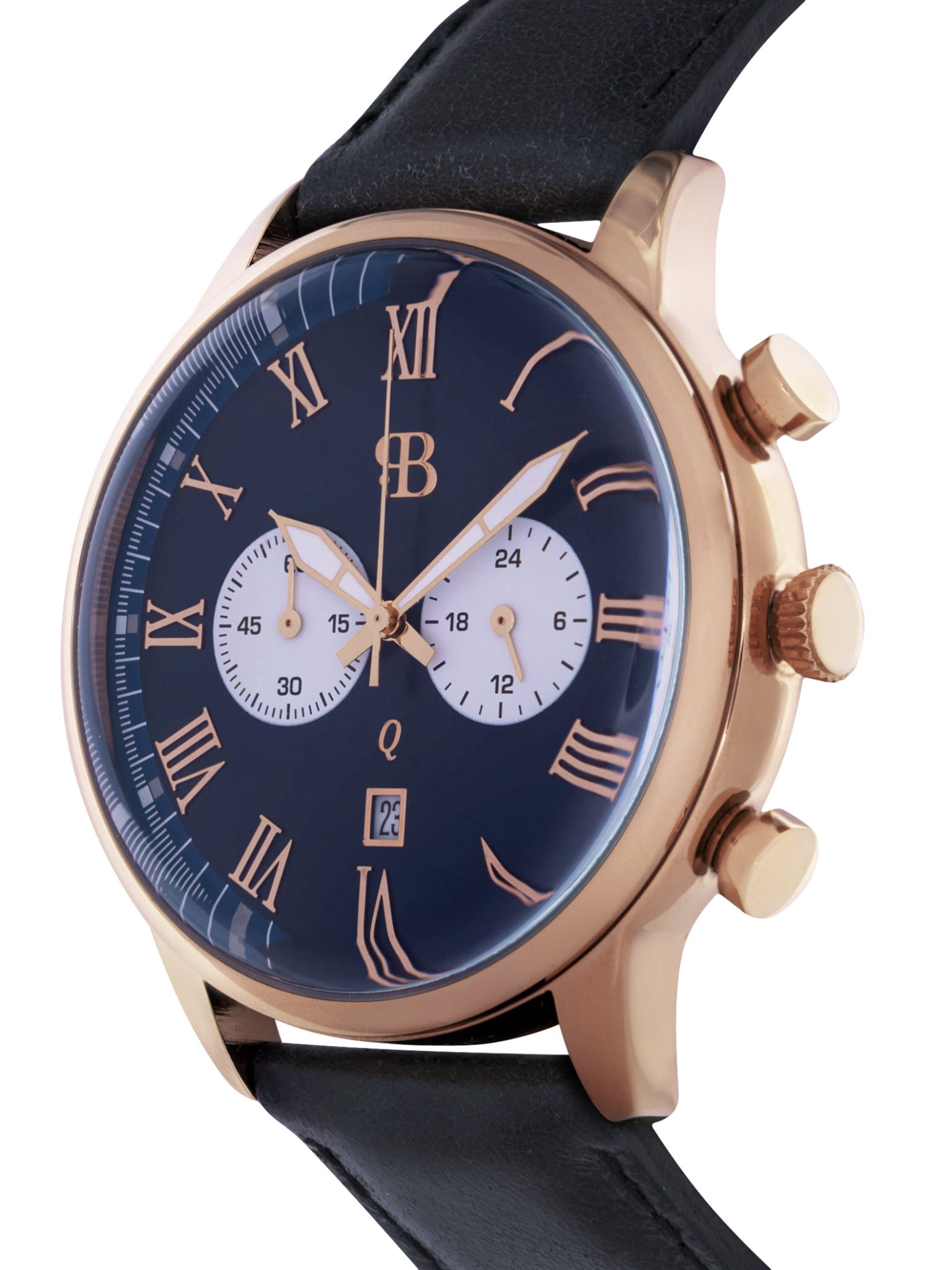 Стальной корпус круглой формы диаметром 43.8 мм и толщиной 12.3 мм выполнен из нержавеющей стали, что обеспечивает высокую прочность и долговечность. Натуральный кожаный ремешок шириной 22 мм помогает оптимально зафиксировать часы на вашей руке и является их грамотным дополнением. Ремешок выполнен в синем цвете, что придает часам элегантный и современный вид.