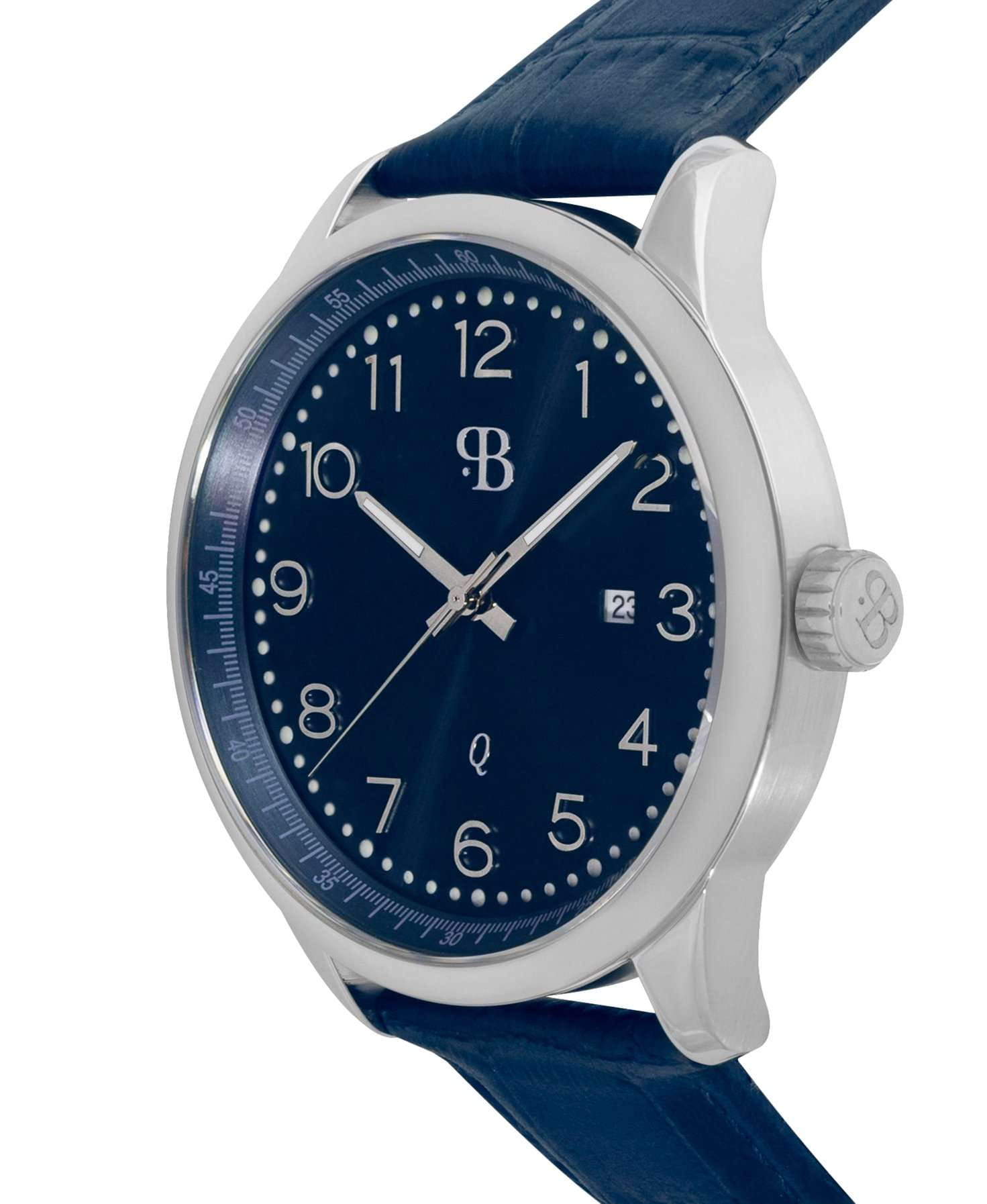Мужские кварцевые часы — это классический аксессуар для ценителя стиля и точности. Корпус диаметром 42 мм и толщиной 10 мм выполнен из нержавеющей стали. Циферблат синего цвета оформлен арабскими цифрами и стрелками. Окошко даты расположено в положении 3 часов. Стрелки с люминесцентным покрытиемЛюминесцентное покрытиеПозволяет считывать показания времени в темноте. Производители наносят на стрелки, часовые индексы, безель или поверхность циферблата светонакопительный состав, дающий холодное свечение., обеспечивающим хорошую читаемость в темноте. Циферблат защищён сапфировым стекломСапфировое стеклоПрочный и надёжный материал из кристалла сапфира синтетического происхождения, характеризующийся особой твёрдостью и устойчивостью к царапинам и повреждениям.. Часы оснащены кожаным ремешком с раскладной застёжкойРаскладная застёжкаТакой тип застёжки используется только на браслетах из металла. Она никогда не раскрывается полностью, происходит разделение на 2 и более частей. Раскладывающая застёжка снизит вероятность потери часов к минимуму.. Водонепроницаемость 100 м позволяет использовать часы для плавания и повседневного ношения. Идеальный выбор для тех, кто ценит стиль, точность и надёжность.