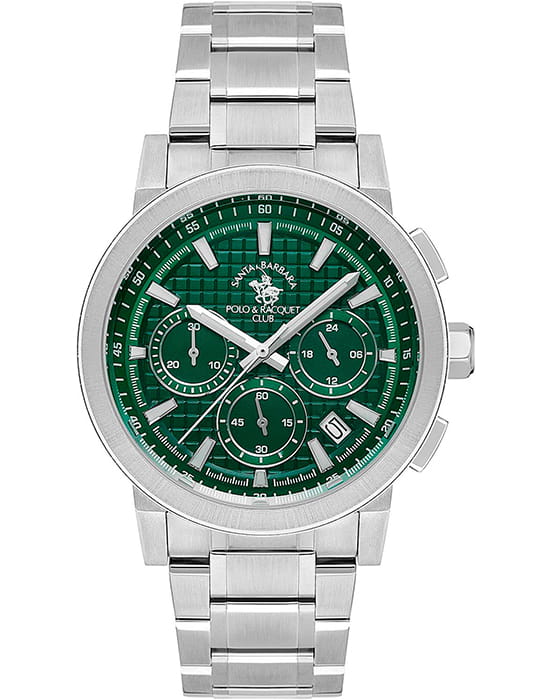 Santa Barbara Polo & Racquet Club — стильный мужской хронограф, сочетающий спортивную динамику и функциональность. Крупный корпус выполнен из нержавеющей стали и гармонично дополнен браслетом на застёжке-бабочке с кнопкамиЗастёжка "бабочка"Такой вид застёжки дополняется предохранителями, помогающими избежать случайного раскрытия браслета. Обладают изящным исполнением. .