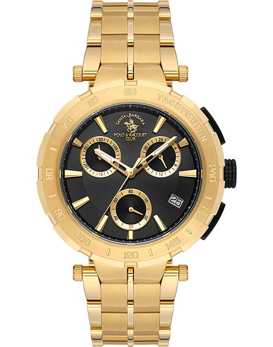 Santa Barbara Polo & Racquet Club — эффектные мужские часы с динамичным спортивным характером. Корпус и браслет выполнены из нержавеющей стали с PVD-покрытиемPVDУльтратонкое покрытие наносится в технике вакуумного напыления, сочетает в себе нитрид титана особой прочности со слоем золота или оксида хрома. Несёт в себе декоративную или защитную функцию., что обеспечивает надёжность и солидный внешний вид.