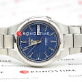 Наручные часы имеют синий циферблат, дополненный узором в спортивном стиле. Компактная модель привлекает универсальным исполнением, будет хорошо смотреться с повседневной, деловой, спортивной одеждой. Аксессуар сделан из стали 316L, серебристый металл устойчив к деформации, повреждениям, коррозии. Внутри надёжного корпуса находится японский автоматический механизм Seiko 7S26, характеризующийся запасом хода до 40 часов. Наблюдать за его работой можно через прозрачную заднюю крышку. Для защиты циферблата используется минеральное стекло Hardlex повышенной прочности. Стрелки имеют люминесцентную подсветкуЛюминесцентное покрытиеПозволяет считывать показания времени в темноте. Производители наносят на стрелки, часовые индексы, безель или поверхность циферблата светонакопительный состав, дающий холодное свечение.. Часы оснащены функцией календаря с индикацией числа и дня недели. Диаметр корпуса: 36 мм.