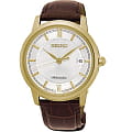 Современные японские наручные мужские часы. Круглый корпус часов выполнен из стали с PVD покрытием золотого цвета. Светлый фон циферблата и золотые элементы дизайна. Водонепроницаемость 10 ATM. Сапфировое стекло, устойчивое к появлению царапин. Часы прочно удерживаются на руке ремешком из натуральной кожи.