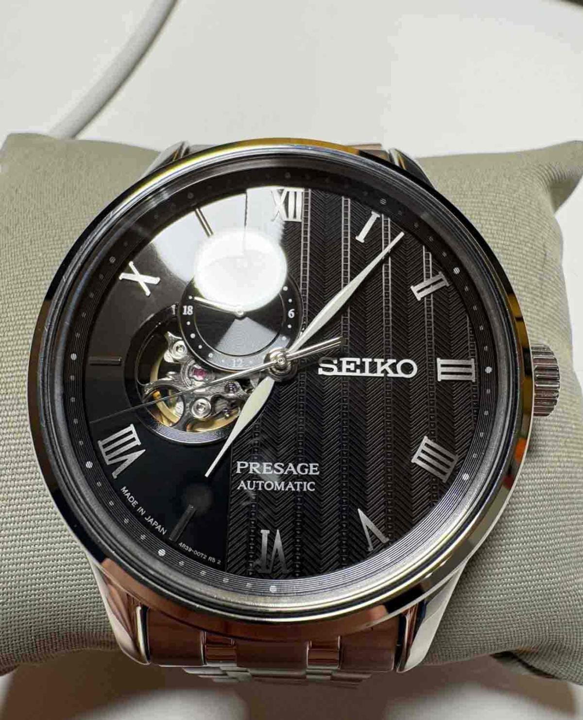 Seiko Presage SSA377J1 — мужские механические часы с автоподзаводом, воплощённое в изысканной и универсальной форме. Корпус диаметром 41.8 мм выполнен из нержавеющей стали. Циферблат защищён сапфировым стекломСапфировое стеклоПрочный и надёжный материал из кристалла сапфира синтетического происхождения, характеризующийся особой твёрдостью и устойчивостью к царапинам и повреждениям., устойчивым к повседневным повреждениям. Циферблат оформлен в минималистичном стиле: накладные серебристые римские цифры и стрелки. Фирменный логотип расположен на позиции «3 часа». Внутри установлен автоматический механизм Seiko 4R39 с возможностью ручного подзавода. Калибр механизма 4R39 на 24 камнях. Запас хода 41 час. Модель оснащена браслетом из нержавеющей стали на застёжке-бабочке с кнопкамиЗастёжка "бабочка"Такой вид застёжки дополняется предохранителями, помогающими избежать случайного раскрытия браслета. Обладают изящным исполнением. , обеспечивающей удобство и надёжность при повседневной носке. Водонепроницаемость 30 метров позволит защитить корпус от случайных брызг или капель дождя.