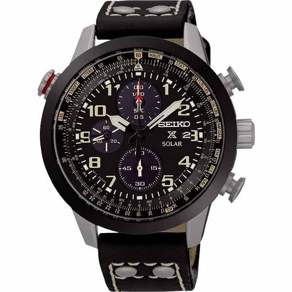 Часы-хронограф с секундомером до 1ч, точность 1/5с. Сплит-хронограф. Питание от всех видов света. Запас хода до 6 месяцев. Функция индикации заряда (EOL) и предотвращения перезарядки. Вращающийся внутренний безель с логарифмической линейкой. Завинчивающаяся задняя крышка.