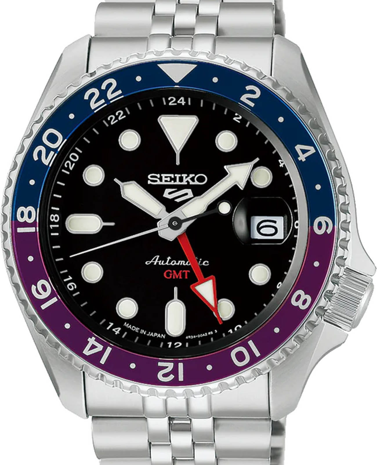 Мужские механические часы с автоподзаводом Seiko 5 Sports SBSC021 — надёжный спортивный аксессуар. Корпус круглый, из нержавеющей стали, диаметром 42 мм и толщиной 14 мм. БезельБезельВнешний ободок, закрепляющий стекло. В спортивных часах так называется поворотное кольцо с делениями на циферблате, выполняет роль таймера – замеряет отрезки времени на шкале. Неподвижный безель – элемент декора. Однонаправленно вращающийся безель на дайверских часах позволяет фиксировать моменты погружения и выныривания на поверхность. поворотный с PVD-покрытиемPVDУльтратонкое покрытие наносится в технике вакуумного напыления, сочетает в себе нитрид титана особой прочности со слоем золота или оксида хрома. Несёт в себе декоративную или защитную функцию.. Циферблат — чёрный, с индикацией даты и функцией второго часового поясаВторой часовой поясФункция, позволяющая отображать время двух часовых поясов одновременно. (Dual Time). Стекло — минеральноеМинеральное стеклоМинеральное стекло представляет собой искусственно выращенный минерал кварца. Такое стекло отличается особой устойчивостью к повреждениям и царапинам. Уступает по некоторым качествам сапфировому стеклу. Hardlex. Стрелки и метки с люминесцентным покрытиемЛюминесцентное покрытиеПозволяет считывать показания времени в темноте. Производители наносят на стрелки, часовые индексы, безель или поверхность циферблата светонакопительный состав, дающий холодное свечение.. Механизм — японский автоматический калибр 4R34, антимагнитный. Водонепроницаемость 100 м. Браслет — стальной на раскладной застёжкеРаскладная застёжкаТакой тип застёжки используется только на браслетах из металла. Она никогда не раскрывается полностью, происходит разделение на 2 и более частей. Раскладывающая застёжка снизит вероятность потери часов к минимуму.. Идеальный выбор для тех, кто ценит японское качество и спортивный дух коллекции Seiko 5 Sports.
