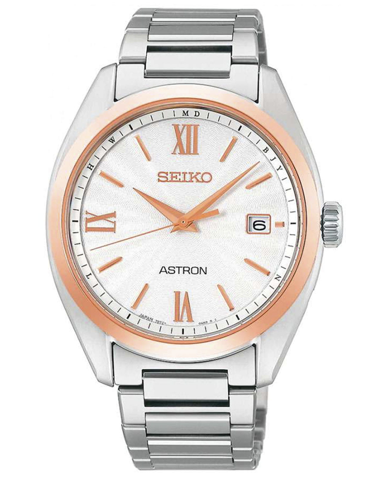 Мужские кварцевые часы Seiko — это высокотехнологичный аксессуар с солнечным питанием и радиосинхронизацией. Корпус размером 39×45,8 мм и толщиной 9,6 мм выполнен из гипоаллергенного титана. БезельБезельВнешний ободок, закрепляющий стекло. В спортивных часах так называется поворотное кольцо с делениями на циферблате, выполняет роль таймера – замеряет отрезки времени на шкале. Неподвижный безель – элемент декора. Однонаправленно вращающийся безель на дайверских часах позволяет фиксировать моменты погружения и выныривания на поверхность. с PVD-покрытиемPVDУльтратонкое покрытие наносится в технике вакуумного напыления, сочетает в себе нитрид титана особой прочности со слоем золота или оксида хрома. Несёт в себе декоративную или защитную функцию. розового золота. Циферблат белого цвета оформлен индексами и стрелками. Окошко даты расположено в положении 3 часов. Циферблат защищён сапфировым стекломСапфировое стеклоПрочный и надёжный материал из кристалла сапфира синтетического происхождения, характеризующийся особой твёрдостью и устойчивостью к царапинам и повреждениям. с антибликовым покрытиемАнтибликовое покрытиеСлой оксида металла в 0,13-0,3 микрон, благодаря которому стекло часов не бликует и не отражает свет. Антибликовое покрытие уменьшает отражение света в 10 раз, обеспечивая отличную читаемость показателей циферблата. для максимальной прозрачности. Механизм — кварцевый с технологией Tough SolarTough SolarТехнология основана на подзарядке аккумулятора от источника солнечного света, специальная панель улавливает солнечные лучи и преобразует их в энергию для работы часов. Достаточно пары минут нахождения на солнце для функционирования часов в течении суток., обеспечивающей работу до 9 месяцев в обычном режиме и до 2 лет в режиме энергосбережения. Часы поддерживают автоматическую радиокоррекцию времени, имеют функцию вечного календаряВечный календарьКлассическое часовое усложнение, представляющее собой календарь, рассчитанный на несколько лет вперёд (стандартно – до 2099 года). Определяет текущую дату, день недели, месяц. (до 2100 года) и устойчивы к магнитным полям. Часы оснащены титановым браслетом с раскладной застёжкойРаскладная застёжкаТакой тип застёжки используется только на браслетах из металла. Она никогда не раскрывается полностью, происходит разделение на 2 и более частей. Раскладывающая застёжка снизит вероятность потери часов к минимуму.. Водонепроницаемость 100 м позволяет использовать часы для плавания и повседневного ношения. Идеальный выбор для тех, кто ценит точность, лёгкость и передовые технологии.