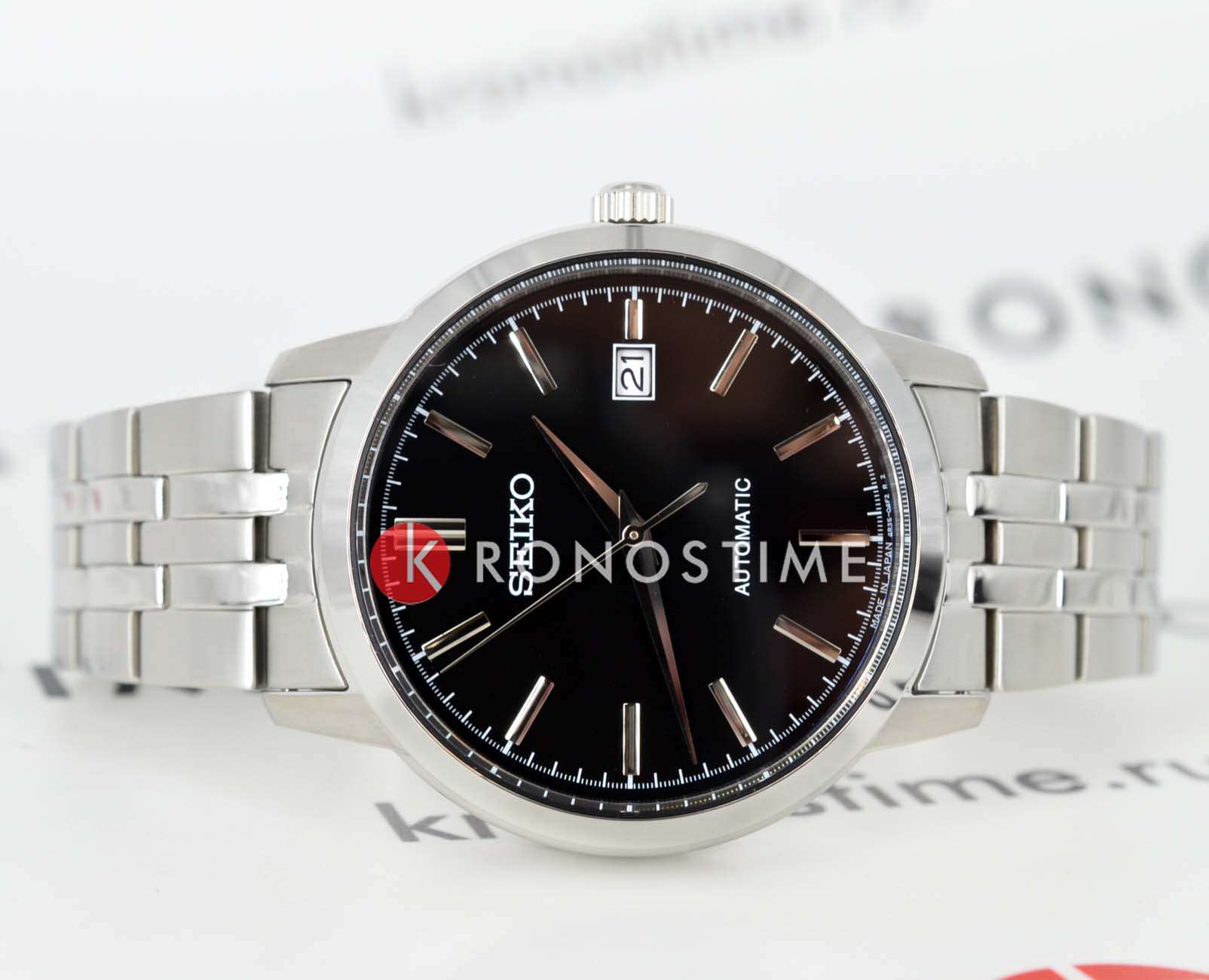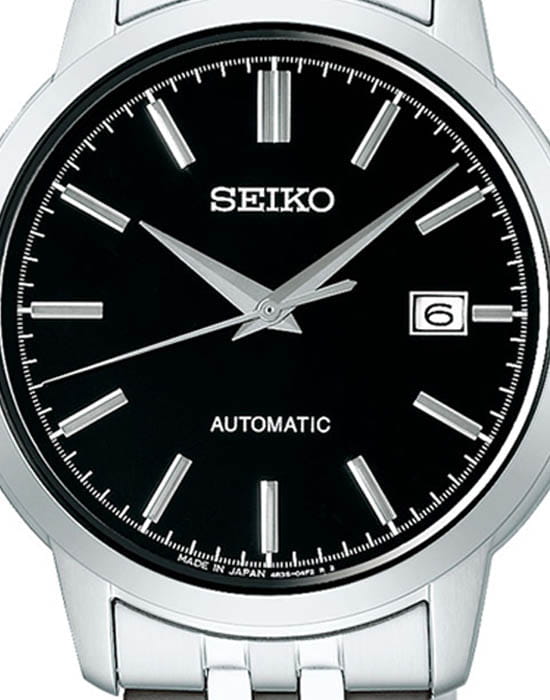 Seiko SCVE061 — сдержанная и надёжная модель с автоматическим механизмом, созданная в лучших традициях японской точности. Корпус из нержавеющей стали отличается строгими линиями и аккуратной отделкой, подчёркивая универсальный мужской стиль. Глубокий чёрный циферблат с лаконичной разметкой выглядит сдержанно и стильно, а окошко даты на «3 часах» делает композицию практичной и завершённой. В основе часов — проверенный калибр 4R35 с автоподзаводом, запасом хода до 41 часа и функцией остановки секундной стрелки. Циферблат защищён прочным минеральным стекломМинеральное стеклоМинеральное стекло представляет собой искусственно выращенный минерал кварца. Такое стекло отличается особой устойчивостью к повреждениям и царапинам. Уступает по некоторым качествам сапфировому стеклу., устойчивым к механическим повреждениям и царапинам. Стальные стрелки и метки обеспечивают хорошую читаемость на тёмном фоне. Часы надёжно сидят на запястье благодаря браслету из нержавеющей стали с удобной раскладной застёжкойРаскладная застёжкаТакой тип застёжки используется только на браслетах из металла. Она никогда не раскрывается полностью, происходит разделение на 2 и более частей. Раскладывающая застёжка снизит вероятность потери часов к минимуму.. Водонепроницаемость до 100 метров делает модель подходящей не только для повседневной носки, но и для активного образа жизни. SCVE061 — это гармоничное сочетание классического дизайна, точности и практичности на каждый день.