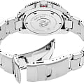Мужские наручные часы Seiko Prospex SNE589 из коллекции Prospex сочетают в себе спортивный дизайн и надежность современных технологий. Модель обладает круглым корпусом диаметром 42,8 мм, изготовленным из нержавеющей стали, что обеспечивает высокую устойчивость к внешним воздействиям . Защита циферблата выполнена с использованием сапфирового стеклаСапфировое стеклоПрочный и надёжный материал из кристалла сапфира синтетического происхождения, характеризующийся особой твёрдостью и устойчивостью к царапинам и повреждениям., устойчивого к появлению царапин и обладающего высокой прозрачностью . БезельБезельВнешний ободок, закрепляющий стекло. В спортивных часах так называется поворотное кольцо с делениями на циферблате, выполняет роль таймера – замеряет отрезки времени на шкале. Неподвижный безель – элемент декора. Однонаправленно вращающийся безель на дайверских часах позволяет фиксировать моменты погружения и выныривания на поверхность. с PVD-покрытиемPVDУльтратонкое покрытие наносится в технике вакуумного напыления, сочетает в себе нитрид титана особой прочности со слоем золота или оксида хрома. Несёт в себе декоративную или защитную функцию.. Часы оснащены системой Solar, которая не требует замены батарейки и обеспечивает запас хода до 10 месяцев при полной зарядке аккумулятора . Кварцевый механизм с калибром V157 гарантирует высокую точность работы, а функция EOLEOLПредставляет собой систему, уведомляющую владельца часов о необходимости замены элемента питания. За 2 недели до полного разряда батарейки секундная стрелка перестаёт ходить чётко и начинает перепрыгивать на 3-4 деления. позволяет контролировать уровень заряда аккумулятора . Циферблат дополнен люминесцентным покрытиемЛюминесцентное покрытиеПозволяет считывать показания времени в темноте. Производители наносят на стрелки, часовые индексы, безель или поверхность циферблата светонакопительный состав, дающий холодное свечение., обеспечивающим видимость в темное время суток. Водонепроницаемость модели достигает 200 метров (WR200), что делает ее подходящей для плавания, ныряния и других водных видов спорта, включая погружение с аквалангом. Браслет выполнен из нержавеющей стали на раскладной застёжкеРаскладная застёжкаТакой тип застёжки используется только на браслетах из металла. Она никогда не раскрывается полностью, происходит разделение на 2 и более частей. Раскладывающая застёжка снизит вероятность потери часов к минимуму., что обеспечивает комфортное ношение и долговечность.