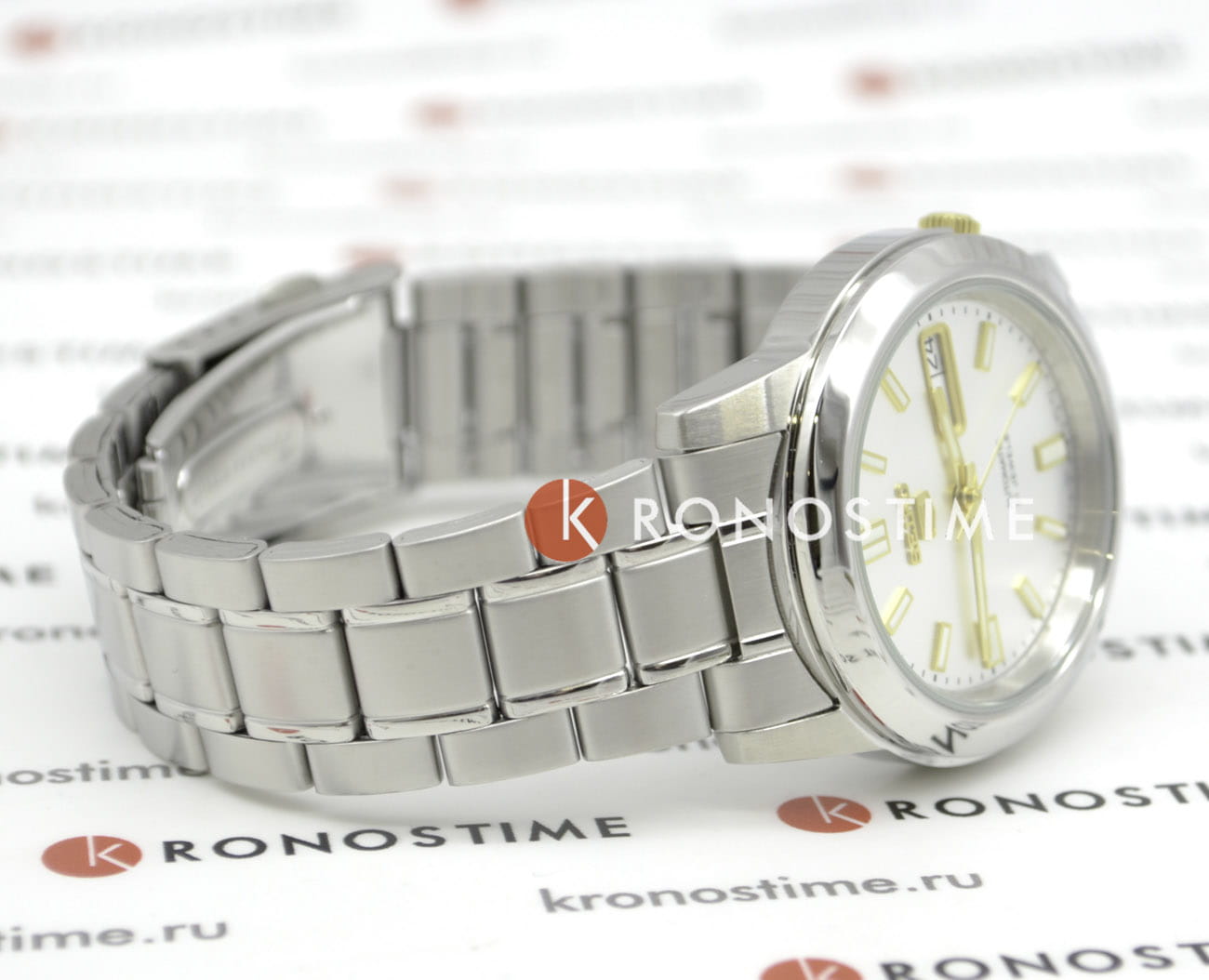 Наручные часы выполнены в классическом стиле, спортивные элементы делают акцент на надёжности и функциональности модели. Традиционный характер выражается в оснащении аксессуара японским механизмом Seiko 7S26 с возможностью ручного и автоматического завода. Калибр отличается сохранением запаса хода на 40 часов, его работу можно отследить через прозрачную завинчивающуюся заднюю крышку. В качестве основного материала была выбрана хирургическая сталь 316L, характеризующаяся устойчивостью к царапинам, повреждениям. Защиту циферблата обеспечивает прочное минеральное стеклоМинеральное стеклоМинеральное стекло представляет собой искусственно выращенный минерал кварца. Такое стекло отличается особой устойчивостью к повреждениям и царапинам. Уступает по некоторым качествам сапфировому стеклу. Hardlex. На стрелки нанесено люминесцентное покрытиеЛюминесцентное покрытиеПозволяет считывать показания времени в темноте. Производители наносят на стрелки, часовые индексы, безель или поверхность циферблата светонакопительный состав, дающий холодное свечение.. Водостойкость при давлении до 3 бар. На позиции 3 часов размещено окошко даты и дня недели. Диаметр корпуса: 37.5 мм.