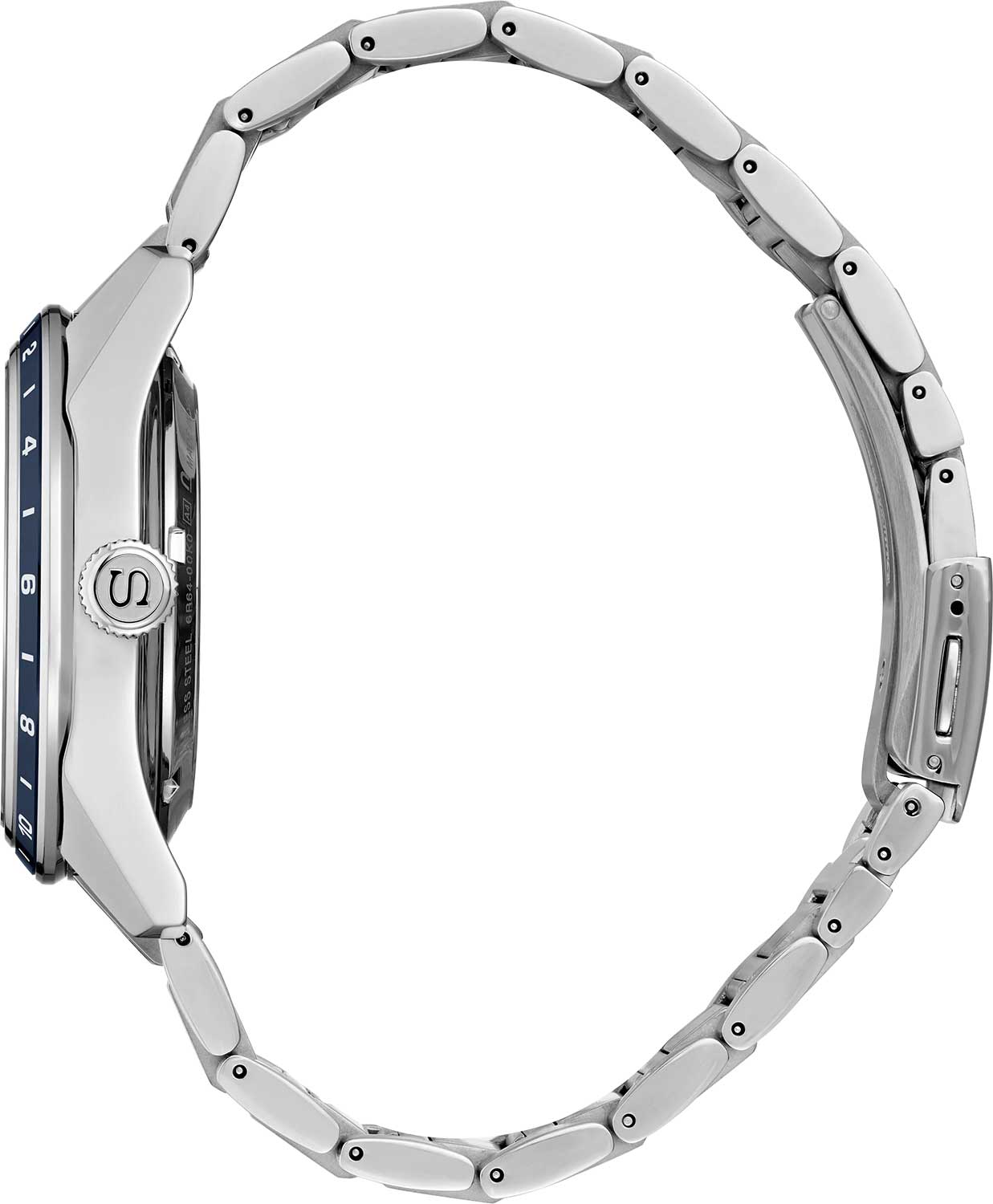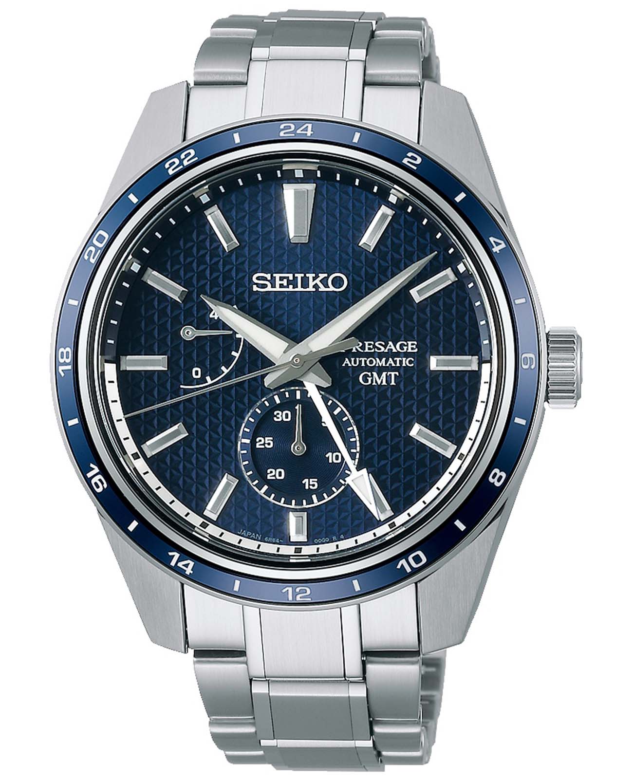 Механические часы Seiko Presage Sharp Edged GMT SPB303 — это лимитированная серия, выпущенная тиражом всего 900 экземпляров. Дизайн циферблата вдохновлён древним японским узором «Асаноха», известным ещё с эпохи Хэйан и отражающим философию гармонии и природной целостности. Часы оснащены калибром 6R64 — надёжным механическим механизмом с автоподзаводом и возможностью ручной подзаводки. Механизм работает на частоте 28 800 полуколебаний в час, имеет 29 драгоценных камней и обеспечивает запас хода до 45 часов с на циферблате. Также реализованы функция стоп-секунды для точной установки времени, отображение второго часового пояса в 24-часовом формате центральной стрелкой, а также календарная корректировка разницы во времениВторой часовой поясФункция, позволяющая отображать время двух часовых поясов одновременно., что делает модель особенно удобной для путешественников. Циферблат оформлен штриховыми метками, а дата вынесена на отдельный малый циферблат в положении 6 часов. Стрелки и индексы дополнены люминесцентным покрытиемЛюминесцентное покрытиеПозволяет считывать показания времени в темноте. Производители наносят на стрелки, часовые индексы, безель или поверхность циферблата светонакопительный состав, дающий холодное свечение. LumiBrite, обеспечивающим отличную читаемость даже в условиях слабого освещения. Защиту циферблата обеспечивает сапфировое стеклоСапфировое стеклоПрочный и надёжный материал из кристалла сапфира синтетического происхождения, характеризующийся особой твёрдостью и устойчивостью к царапинам и повреждениям. с антибликовым покрытием на внутренней поверхности, что делает его не только прочным, но и удобным для считывания информации при любом освещении. Корпус изготовлен из стали с частичным PVD-покрытиемPVDУльтратонкое покрытие наносится в технике вакуумного напыления, сочетает в себе нитрид титана особой прочности со слоем золота или оксида хрома. Несёт в себе декоративную или защитную функцию., придающим модели благородный внешний вид. Заводная головка имеет рифлёную форму, а задняя крышка — завинчивающуюся конструкцию с прозрачным окном и гравировкой уникального серийного номера, что подчёркивает эксклюзивность каждой модели. Браслет выполнен из нержавеющей стали и оснащён трёхсгибной раскладной застёжкойРаскладная застёжкаТакой тип застёжки используется только на браслетах из металла. Она никогда не раскрывается полностью, происходит разделение на 2 и более частей. Раскладывающая застёжка снизит вероятность потери часов к минимуму. с кнопочным механизмом, обеспечивающей комфорт и надёжность при ношении. В комплекте также предусмотрен сменный кожаный ремешок для более неформального образа. Часы обладают водонепроницаемостью WR 100, что позволяет использовать их при плавании или занятиях водными видами спорта без глубокого погружения. Эти часы станут идеальным выбором для тех, кто ценит историю, точность и эстетику — универсальный аксессуар, сочетающий в себе японское мастерство, практичность и современный дизайн.