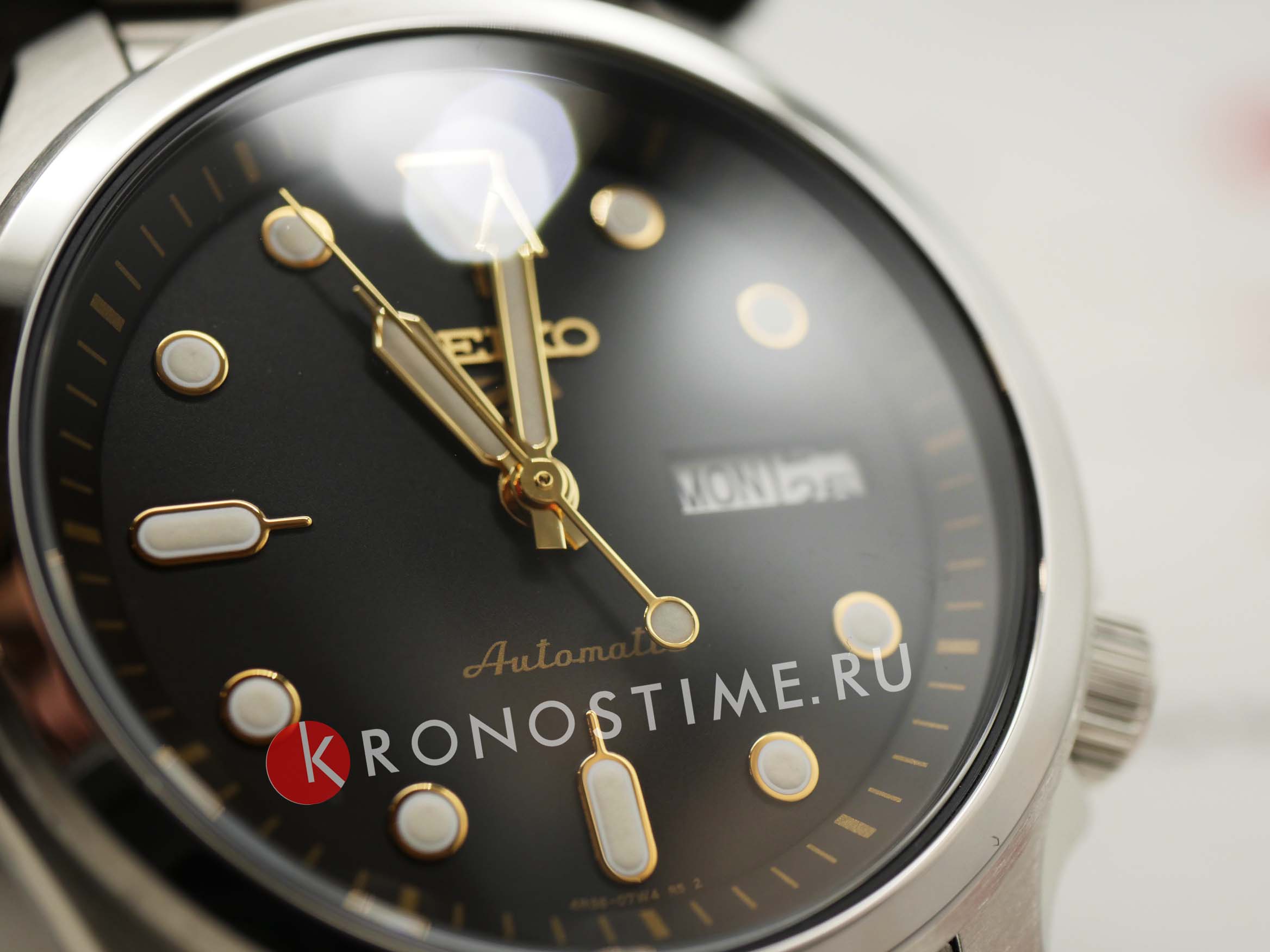 Внутри часов установлен механический калибр 4R36 с автоподзаводом, обеспечивающий точность хода и запас хода до 41 часа. Функция отображения дня недели и даты расположена на отметке 3 часа, что добавляет практичности в повседневном использовании.