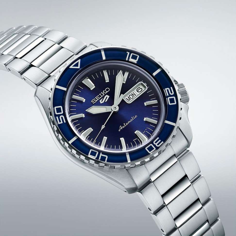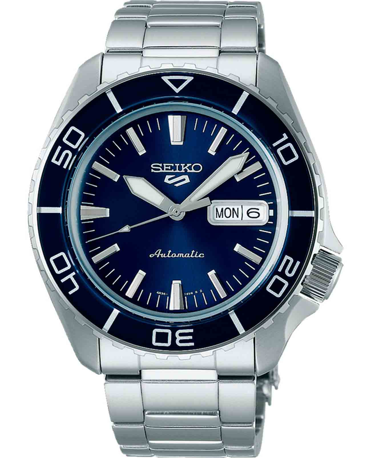 Мужские наручные часы Seiko SRPK97K1 из коллекции 5 Sports сочетают в себе стильный дизайн и надежность современных технологий. Модель обладает круглым корпусом диаметром 42,5 мм, изготовленным из нержавеющей стали, что обеспечивает высокую устойчивость к внешним воздействиям. БезельБезельВнешний ободок, закрепляющий стекло. В спортивных часах так называется поворотное кольцо с делениями на циферблате, выполняет роль таймера – замеряет отрезки времени на шкале. Неподвижный безель – элемент декора. Однонаправленно вращающийся безель на дайверских часах позволяет фиксировать моменты погружения и выныривания на поверхность. с PVD-покрытиемPVDУльтратонкое покрытие наносится в технике вакуумного напыления, сочетает в себе нитрид титана особой прочности со слоем золота или оксида хрома. Несёт в себе декоративную или защитную функцию.. Для защиты циферблата используется минеральное стеклоМинеральное стеклоМинеральное стекло представляет собой искусственно выращенный минерал кварца. Такое стекло отличается особой устойчивостью к повреждениям и царапинам. Уступает по некоторым качествам сапфировому стеклу., которое эффективно противостоит царапинам и механическим повреждениям. Часы оснащены автоматическим механизмом с калибром 4R36, поддерживающим автоподзавод и имеющим запас хода около 41 часа. Водонепроницаемость модели достигает 10 атмосфер (100 метров), что позволяет использовать их во время плавания и других водных видов спорта. Стальной браслет на раскладной застёжкеРаскладная застёжкаТакой тип застёжки используется только на браслетах из металла. Она никогда не раскрывается полностью, происходит разделение на 2 и более частей. Раскладывающая застёжка снизит вероятность потери часов к минимуму.. Циферблат оснащен функцией индикации даты, центральной секундной стрелкой и люминесцентным покрытиемЛюминесцентное покрытиеПозволяет считывать показания времени в темноте. Производители наносят на стрелки, часовые индексы, безель или поверхность циферблата светонакопительный состав, дающий холодное свечение. стрелок и маркеров для удобства использования в темное время суток.