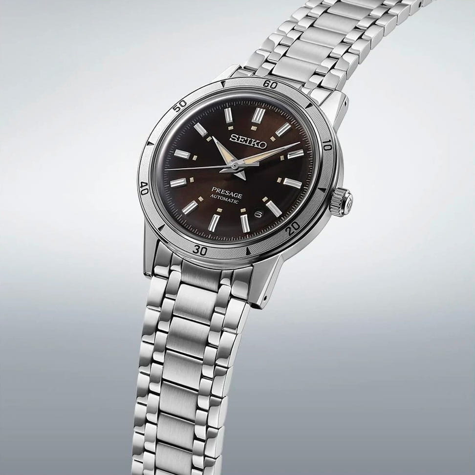 Мужские наручные часы Seiko SRPL09J1 из коллекции Presage Style 60s сочетают в себе классический дизайн и надежность современных технологий. Модель обладает круглым корпусом диаметром 40 мм, изготовленным из нержавеющей стали, что обеспечивает высокую устойчивость к внешним воздействиям . Толщина корпуса составляет 12 мм, а для защиты используется минеральное стеклоМинеральное стеклоМинеральное стекло представляет собой искусственно выращенный минерал кварца. Такое стекло отличается особой устойчивостью к повреждениям и царапинам. Уступает по некоторым качествам сапфировому стеклу. Hardlex Crystal, обеспечивающее прочную защиту от царапин. Браслет также выполнен из нержавеющей стали с раскладной застежкойРаскладная застёжкаТакой тип застёжки используется только на браслетах из металла. Она никогда не раскрывается полностью, происходит разделение на 2 и более частей. Раскладывающая застёжка снизит вероятность потери часов к минимуму., гарантирующей комфортное ношение . Циферблат черного цвета украшен текстурой, которая подчеркивает элегантный стиль модели. Часы оснащены функцией отображения даты на позиции между «4 и 5 часами» . Модель работает на автоматическом механизме с калибром 4R35, который включает 23 камня и обладает запасом хода до 41 часа . Водонепроницаемость составляет WR 50, что позволяет защитить корпус от случайных брызг и кратковременного контакта с водой . Вдохновленные культурой 1960-х годов, эти часы демонстрируют уникальный стиль и внимание к деталям, сохраняя при этом практичность для повседневного использования.