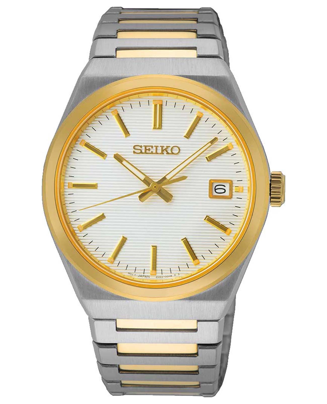 Мужские японские часы Seiko Conceptual Series Dress SUR558P1 с сапфировым стекломСапфировое стеклоПрочный и надёжный материал из кристалла сапфира синтетического происхождения, характеризующийся особой твёрдостью и устойчивостью к царапинам и повреждениям., кварцевый механизм с высокой точностью. Класс водозащиты: 100 метров, позволит плавать, нырять и заниматься другими водными видами спорта. Корпус часов изготовлен из стали. Стальной браслет с частичным PVD-покрытиемPVDУльтратонкое покрытие наносится в технике вакуумного напыления, сочетает в себе нитрид титана особой прочности со слоем золота или оксида хрома. Несёт в себе декоративную или защитную функцию. на раскладной застёжкеРаскладная застёжкаТакой тип застёжки используется только на браслетах из металла. Она никогда не раскрывается полностью, происходит разделение на 2 и более частей. Раскладывающая застёжка снизит вероятность потери часов к минимуму.. Стрелки и метки с люминесцентным покрытиемЛюминесцентное покрытиеПозволяет считывать показания времени в темноте. Производители наносят на стрелки, часовые индексы, безель или поверхность циферблата светонакопительный состав, дающий холодное свечение. LumiBrite. Окошко даты находится в положении 3 часа. Неподвижный безельБезельВнешний ободок, закрепляющий стекло. В спортивных часах так называется поворотное кольцо с делениями на циферблате, выполняет роль таймера – замеряет отрезки времени на шкале. Неподвижный безель – элемент декора. Однонаправленно вращающийся безель на дайверских часах позволяет фиксировать моменты погружения и выныривания на поверхность. с PVD-покрытиемPVDУльтратонкое покрытие наносится в технике вакуумного напыления, сочетает в себе нитрид титана особой прочности со слоем золота или оксида хрома. Несёт в себе декоративную или защитную функцию..