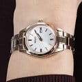 Женские японские наручные часы Seiko Conceptual Series Dress SUR630P1, кварцевый механизм с высокой точностью. Сапфировое стекло устойчивое к появлению царапин, обладающее высокой прозрачностью. Класс водозащиты: 100 метров, позволит плавать, нырять и заниматься другими водными видами спорта. Корпус часов изготовлен из стали, золотистого цвета.