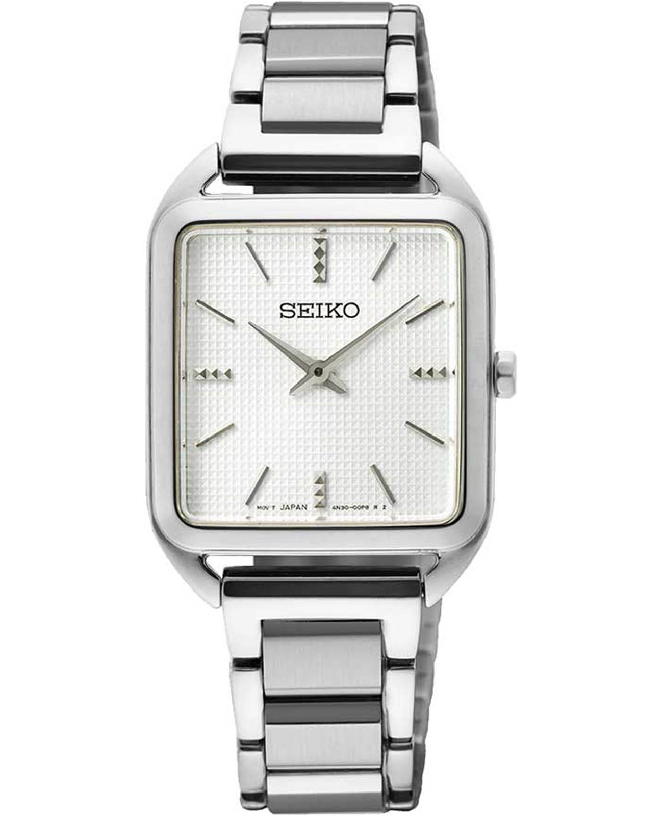 Женские японские часы Seiko Discover More SWR073P1 c кварцевым механизмом с высокой точностью с калибром 4N30.Минеральное стеклоМинеральное стеклоМинеральное стекло представляет собой искусственно выращенный минерал кварца. Такое стекло отличается особой устойчивостью к повреждениям и царапинам. Уступает по некоторым качествам сапфировому стеклу. с повышенной прочностью Hardlex устойчивое к появлению царапин, обладающее высокой прозрачностью. Водозащита до 5 ATM позволяет не снимать часы при дожде, мытье рук или случайных брызгах. Корпус и браслет изготовлены из нержавеющей стали. Браслет с раскладной застёжкойРаскладная застёжкаТакой тип застёжки используется только на браслетах из металла. Она никогда не раскрывается полностью, происходит разделение на 2 и более частей. Раскладывающая застёжка снизит вероятность потери часов к минимуму. с фиксатором. Белый циферблат с метками в виде штрихов. Seiko — это гармония изящного дизайна и технологичной надёжности, компактный и стильный выбор для повседневной классики.