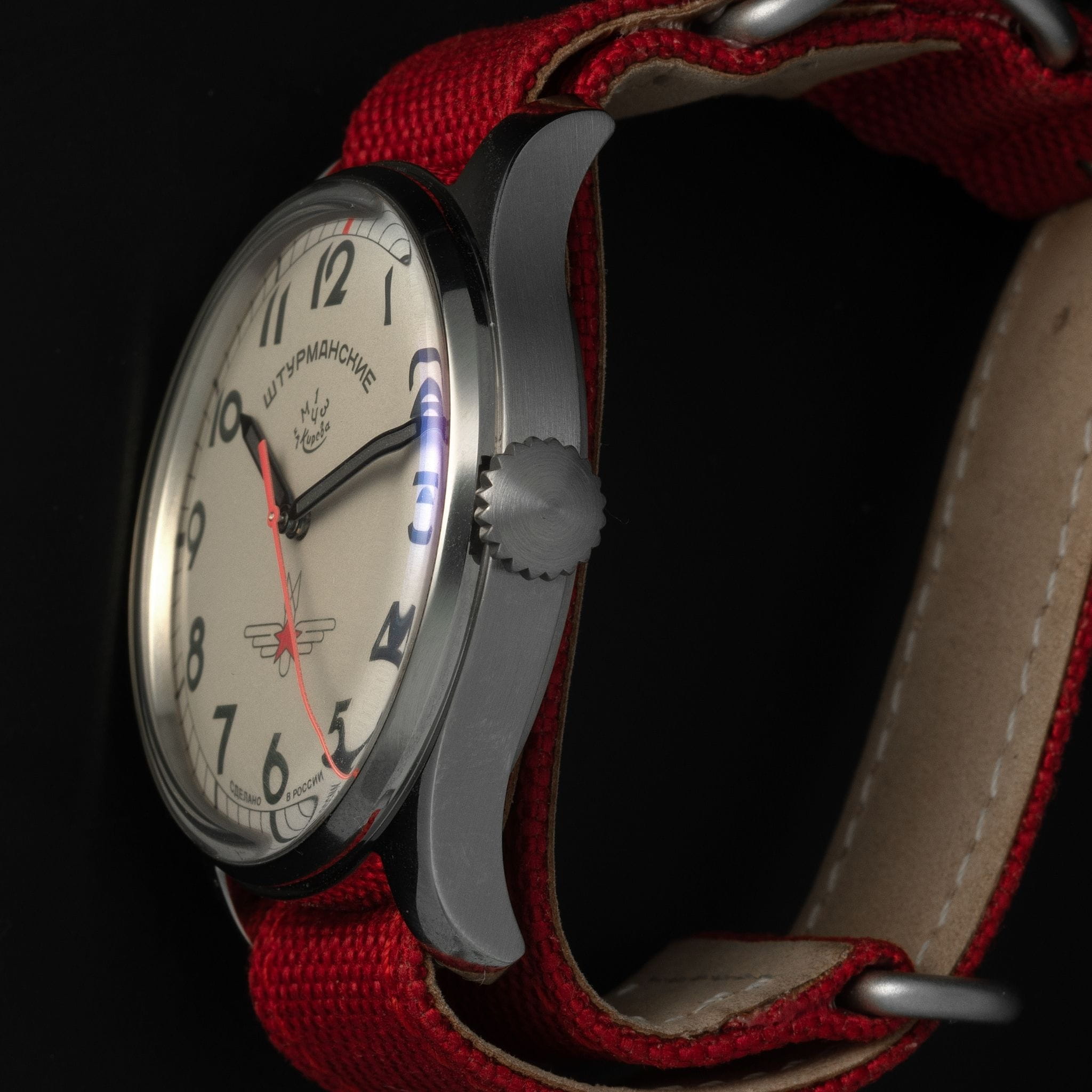 Мужские российские механические часы Штурманские Гагарин Наследие 2609/3787200, механический механизм (автоматический калибр) с высокой точностью. Минеральное стеклоМинеральное стеклоМинеральное стекло представляет собой искусственно выращенный минерал кварца. Такое стекло отличается особой устойчивостью к повреждениям и царапинам. Уступает по некоторым качествам сапфировому стеклу. устойчивое к мелким механическим повреждениям. Класс водозащиты: 30 метров, позволит защитить корпус от случайных брызг или капель дождя. Корпус часов изготовлен из титана. Текстильный ремешок на стандартной застёжке. Стрелки и метки с люминесцентным покрытиемЛюминесцентное покрытиеПозволяет считывать показания времени в темноте. Производители наносят на стрелки, часовые индексы, безель или поверхность циферблата светонакопительный состав, дающий холодное свечение.. Чёткая, читаемая минутная шкала уходит за приделы видимой области циферблата, подчёркивая изящность ободка корпуса. Оцифровка циферблата – отличительная особенность данной модели, её дизайн не изменился с самой первый, гагаринской серии. Заводная головка конической формы с удобной насечкой повторяет дизайн оригинальной модели. Лимитированная серия: 60 шт.