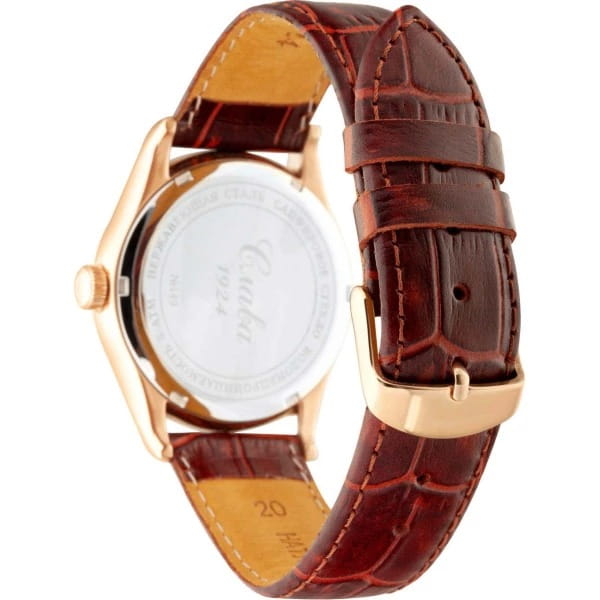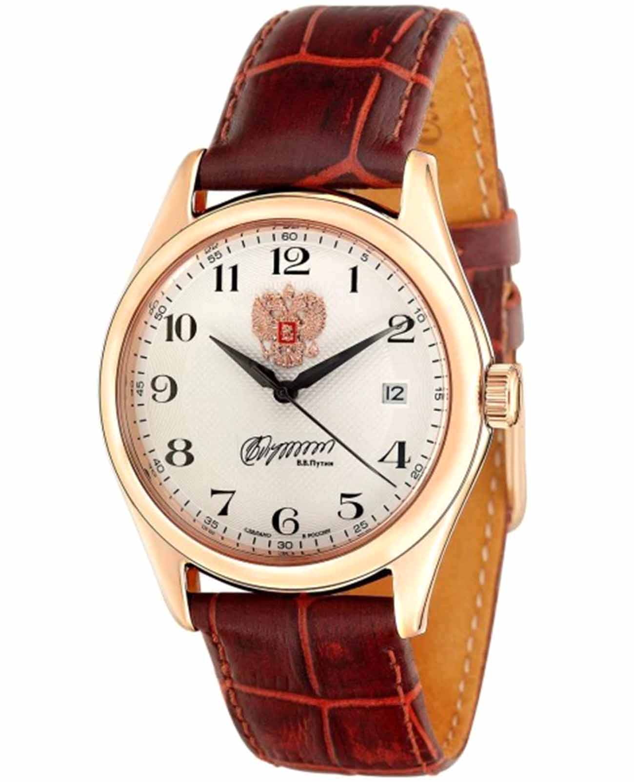 Российские механические наручные часы Слава 1493910/300-8215, которые станут идеальным аксессуаром для повседневного ношения. Эти часы сочетают в себе элегантность и практичность, предлагая безупречный стиль и надежность. Оснащенные механизмом Miyota 8215 с автоподзаводом, они обеспечивают точность и долговечность, поддерживая запас хода до 42 часов. Стальной корпус с IP-покрытиемIP-покрытиеМетод ионного напыления. Демонстрирует повышенную устойчивость к истиранию, окислению и химическим веществам. Под воздействием высокого давления и температуры около 1500°C молекулы металла надёжно соединяются с частицами корпуса часов. и сапфировым стекломСапфировое стеклоПрочный и надёжный материал из кристалла сапфира синтетического происхождения, характеризующийся особой твёрдостью и устойчивостью к царапинам и повреждениям. защищает белый циферблат с арабскими цифрами. На циферблате изображены герб Российской Федерации и автограф В.В. Путина. Часы также имеют календарь с окошком даты на 3 часах и водозащиту до 50WR, что делает их надежными в различных условиях. Текстурированный кожаный ремешок с классической застежкой завершает этот изысканный образ.