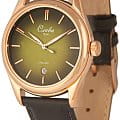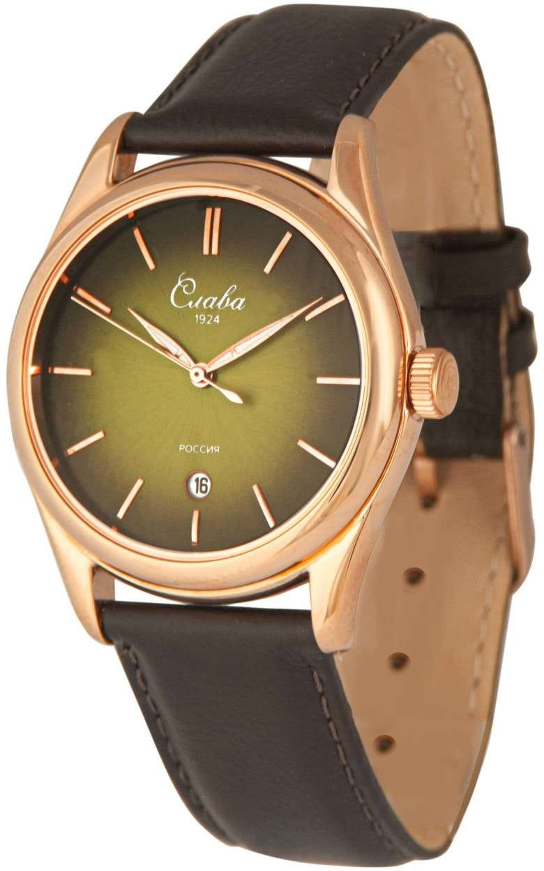 Российские наручные часы Слава Сенат 2493523/300-2115 станут отличным дополнением к вашему образу и идеальным выбором для тех, кто ценит стиль, комфорт и надежность. Эти часы оснащены японским кварцевым механизмом Miyota 2115, что гарантирует их точность и долговечность. Корпус часов диаметром 38 мм и толщиной 11 мм выполнен из прочной стали с золотистым IP-покрытиемIP-покрытиеМетод ионного напыления. Демонстрирует повышенную устойчивость к истиранию, окислению и химическим веществам. Под воздействием высокого давления и температуры около 1500°C молекулы металла надёжно соединяются с частицами корпуса часов., а зеленый циферблат с эффектом "солнечные лучи" изящными метками защищен сапфировым стекломСапфировое стеклоПрочный и надёжный материал из кристалла сапфира синтетического происхождения, характеризующийся особой твёрдостью и устойчивостью к царапинам и повреждениям., устойчивым к царапинам. Окошко календаря, расположенное в положении 6 часов, добавляет функциональности и удобства в повседневном использовании. Стрелки с люминесцентным покрытиемЛюминесцентное покрытиеПозволяет считывать показания времени в темноте. Производители наносят на стрелки, часовые индексы, безель или поверхность циферблата светонакопительный состав, дающий холодное свечение., что облегчает чтение времени даже в условиях слабого освещения. Эти часы обладают водозащитой 50WR, что позволяет не переживать за их сохранность в условиях повышенной влажности. Завершает образ кожаный ремешок с классической застежкой, обеспечивающий комфортную посадку на запястье.