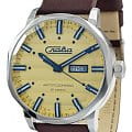 Класс водозащиты часов составляет 100 метров, позволит плавать, нырять и заниматься другими водными видами спорта. Эти часы идеально подойдут для повседневного использования, сочетая в себе стиль, надежность и функциональность. Стрелки и метки с люминесцентным покрытиемЛюминесцентное покрытиеПозволяет считывать показания времени в темноте. Производители наносят на стрелки, часовые индексы, безель или поверхность циферблата светонакопительный состав, дающий холодное свечение.. Окошки дня недели и даты находятся в положении 3 часа.