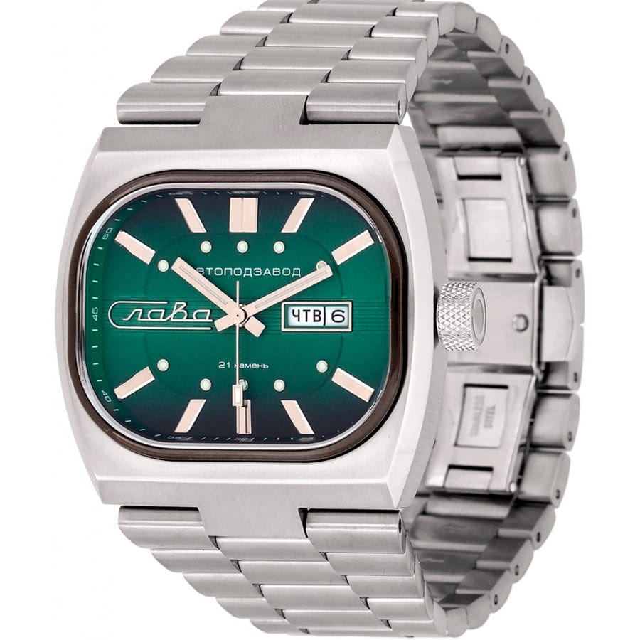 Российские часы Слава 3042704/100-8205 оснащены механизмом Miyota 8205, что обеспечивает исключительную надежность и точность хода. Корпус и браслет часов выполнены из стали, что придает им долговечность и устойчивость к внешним воздействиям. Сапфировое стеклоСапфировое стеклоПрочный и надёжный материал из кристалла сапфира синтетического происхождения, характеризующийся особой твёрдостью и устойчивостью к царапинам и повреждениям.. Класс водозащиты часов составляет 100 метров, позволит плавать, нырять и заниматься другими водными видами спорта. Эти часы идеально подойдут для повседневного использования, сочетая в себе стиль, надежность и функциональность. Стрелки и метки с люминесцентным покрытиемЛюминесцентное покрытиеПозволяет считывать показания времени в темноте. Производители наносят на стрелки, часовые индексы, безель или поверхность циферблата светонакопительный состав, дающий холодное свечение.. Окошки дня недели и даты находятся в положении 3 часа. Стальной браслет на раскладной застёжкеРаскладная застёжкаТакой тип застёжки используется только на браслетах из металла. Она никогда не раскрывается полностью, происходит разделение на 2 и более частей. Раскладывающая застёжка снизит вероятность потери часов к минимуму..