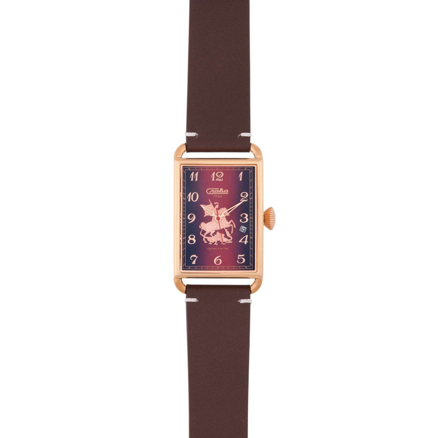 Часы Слава Москва 8703735/300-2414 — это воплощение элегантности и стиля, которое станет идеальным дополнением к вашему деловому гардеробу. Созданные в России, они оснащены надежным механическим механизмом калибра Слава 2414. Корпус выполнен из высококачественной стали с PVDPVDУльтратонкое покрытие наносится в технике вакуумного напыления, сочетает в себе нитрид титана особой прочности со слоем золота или оксида хрома. Несёт в себе декоративную или защитную функцию. покрытием, что обеспечивает долговечность и изысканный внешний вид. Красный циферблат украшен изображением Георгия Победоносца и защищен прочным сапфировым стекломСапфировое стеклоПрочный и надёжный материал из кристалла сапфира синтетического происхождения, характеризующийся особой твёрдостью и устойчивостью к царапинам и повреждениям., которое устойчиво к царапинам. Арабские цифры и окошко даты, расположенное между отметками 3 и 4 часа, добавляют функциональности и удобства в использовании. Задняя крышка, крепящаяся на 4 винтах, украшена надписью «Москва», подчеркивая уникальность и оригинальность модели. Кожаный ремешок с классической застежкой и системой быстрой замены не только обеспечивает комфорт, но и позволяет легко менять его по вашему желанию. Часы обладают водозащитой 50WR, что делает их подходящими для ежедневного ношения. Компактные габариты и вес в 70 грамм делают их удобными и практически незаметными на запястье. Эта лимитированная серия выпущена в количестве всего 500 экземпляров, что придает особую ценность и эксклюзивность вашему выбору. Часы поставляются в стильной подарочной упаковке, что делает их отличным подарком для ценителей высокого качества и утонченного дизайна.