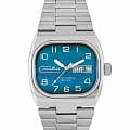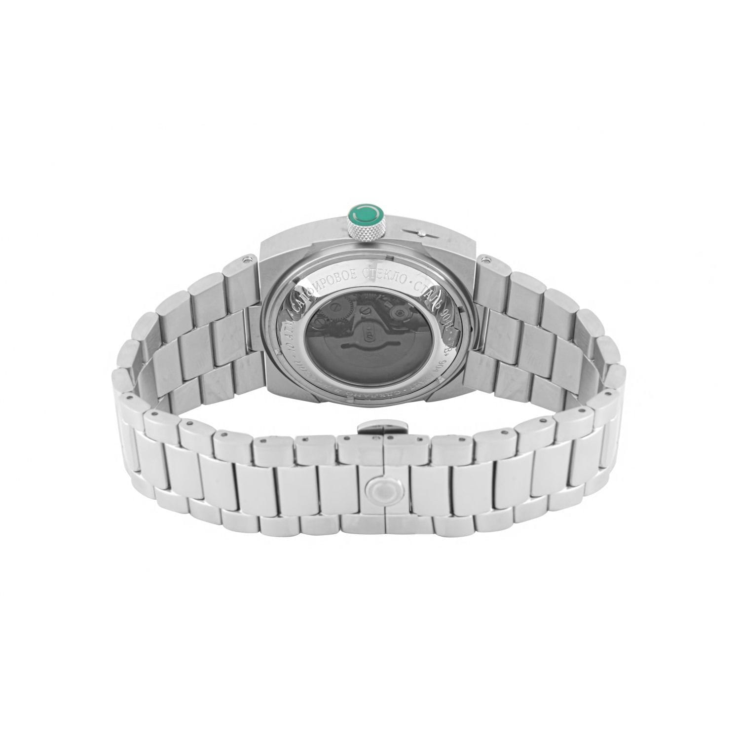 Российские часы Слава Телевизор 9045565/100-2427 оснащены механизмом Слава 2427, что обеспечивает исключительную надежность и точность хода. Корпус и браслет часов выполнены из стали, что придает им долговечность и устойчивость к внешним воздействиям. Сапфировое стеклоСапфировое стеклоПрочный и надёжный материал из кристалла сапфира синтетического происхождения, характеризующийся особой твёрдостью и устойчивостью к царапинам и повреждениям., которое еще и граненое, защищает голубой циферблат от царапин. Водозащита уровня 100WR позволяет использовать часы в различных условиях. Эти часы идеально подойдут для повседневного использования, сочетая в себе стиль, надежность и функциональность. Стрелки с люминесцентным покрытиемЛюминесцентное покрытиеПозволяет считывать показания времени в темноте. Производители наносят на стрелки, часовые индексы, безель или поверхность циферблата светонакопительный состав, дающий холодное свечение., что облегчает чтение времени даже в условиях слабого освещения. Окошки дня недели и даты находятся в положении 3 часа. Стальной браслет на застежке «бабочка»Застёжка "бабочка"Такой вид застёжки дополняется предохранителями, помогающими избежать случайного раскрытия браслета. Обладают изящным исполнением. обеспечивает комфортное и надёжное крепление на запястье. Лимитированная серия ограничена 500 экземплярами, что подчеркивает их уникальность. Эти часы станут надежным спутником в вашей повседневной жизни.