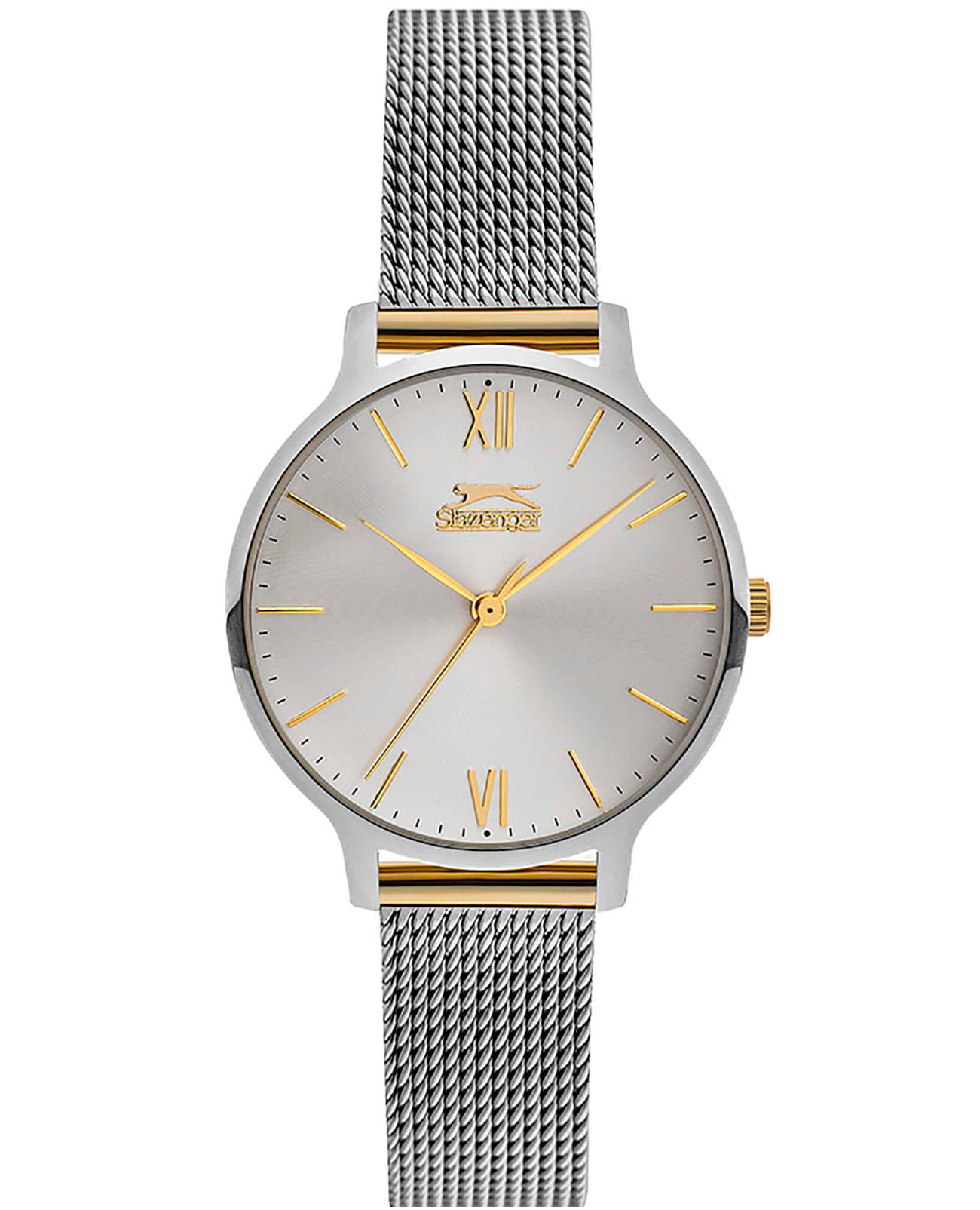 Женские наручные часы Slazenger SL.09.1823.2.03 из коллекции Essentials сочетают в себе элегантный дизайн и практичность современных технологий. Модель обладает круглым корпусом диаметром 34 мм, изготовленным из суперметалла с IP-покрытиемIP-покрытиеМетод ионного напыления. Демонстрирует повышенную устойчивость к истиранию, окислению и химическим веществам. Под воздействием высокого давления и температуры около 1500°C молекулы металла надёжно соединяются с частицами корпуса часов., что обеспечивает высокую устойчивость к внешним воздействиям. Браслет выполнен в виде миланского плетения серебряного цвета с раскладной застежкойРаскладной замокДанный вариант застежки используется только на часах с металлическим браслетом. Отличительная особенность такого крепления в том, что длина браслета становится универсальной и вы можете самостоятельно отрегулировать нужный вам размер – застежка просто двигается по браслету часов., гарантирующей комфортное ношение и безопасность. Серебристый циферблат делает модель особенно женственной и привлекательной. Для защиты используется минеральное стеклоМинеральное стеклоМинеральное стекло представляет собой искусственно выращенный минерал кварца. Такое стекло отличается особой устойчивостью к повреждениям и царапинам. Уступает по некоторым качествам сапфировому стеклу., обеспечивающее прочную защиту от царапин. Часы работают на кварцевом механизме, что гарантирует точное время без необходимости подзаводки. Водонепроницаемость часов составляет 3 атмосферы (30 метров), что позволяет использовать их в повседневной жизни, но не рекомендуется для плавания или водных видов спорта.