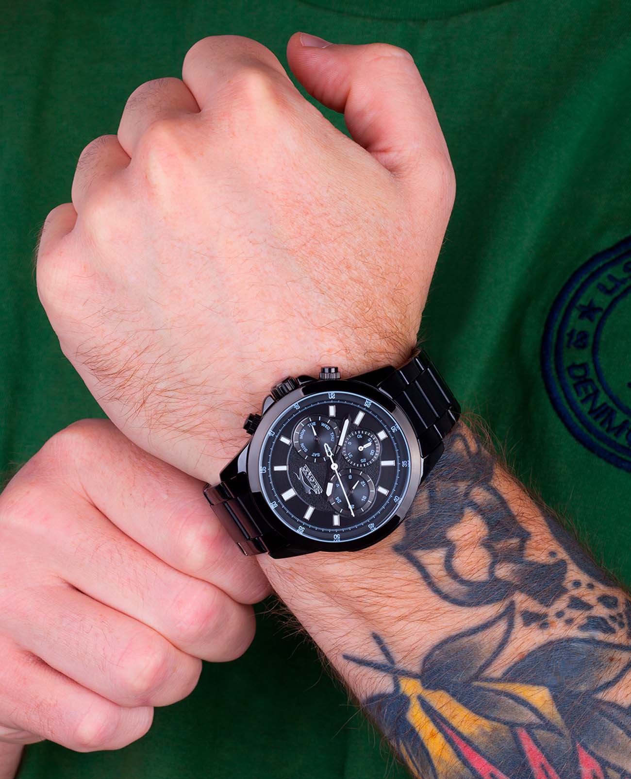 Мужские наручные часы Slazenger SL.09.2011.2.01 представляют собой идеальное сочетание классического дизайна и современных технологий. Модель обладает круглым корпусом диаметром 46 мм, изготовленным из суперметалла с IP-покрытиемIP-покрытиеМетод ионного напыления. Демонстрирует повышенную устойчивость к истиранию, окислению и химическим веществам. Под воздействием высокого давления и температуры около 1500°C молекулы металла надёжно соединяются с частицами корпуса часов., что обеспечивает высокую устойчивость к внешним воздействиям. Браслет так же выполнен из суперметалла с IP-покрытиемIP-покрытиеМетод ионного напыления. Демонстрирует повышенную устойчивость к истиранию, окислению и химическим веществам. Под воздействием высокого давления и температуры около 1500°C молекулы металла надёжно соединяются с частицами корпуса часов. на раскладной застёжкеРаскладная застёжкаТакой тип застёжки используется только на браслетах из металла. Она никогда не раскрывается полностью, происходит разделение на 2 и более частей. Раскладывающая застёжка снизит вероятность потери часов к минимуму., гарантирующей комфортное ношение и безопасность. Черный циферблат оснащен дополнительными отображениями на малых циферблатах даты, дня недели и текущего времени. Для защиты применяется минеральное стеклоМинеральное стеклоМинеральное стекло представляет собой искусственно выращенный минерал кварца. Такое стекло отличается особой устойчивостью к повреждениям и царапинам. Уступает по некоторым качествам сапфировому стеклу. с антибликовым эффектом, обеспечивающее прочную защиту от царапин. Часы работают на кварцевом механизме, что гарантирует точное время без необходимости подзаводки. Водонепроницаемость часов достигает 50 метров, позволит защитить корпус от случайных брызг или капель дождя.