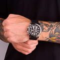 Мужские наручные часы Slazenger SL.09.2012.2.01 в себе классический дизайн и надежность современных технологий. Модель обладает круглым корпусом диаметром 47 мм и толщиной 13 мм, изготовленным из суперметалла , что обеспечивает высокую устойчивость к внешним воздействиям. БезельБезельВнешний ободок, закрепляющий стекло. В спортивных часах так называется поворотное кольцо с делениями на циферблате, выполняет роль таймера – замеряет отрезки времени на шкале. Неподвижный безель – элемент декора. Однонаправленно вращающийся безель на дайверских часах позволяет фиксировать моменты погружения и выныривания на поверхность. с IP-покрытиемIP-покрытиеМетод ионного напыления. Демонстрирует повышенную устойчивость к истиранию, окислению и химическим веществам. Под воздействием высокого давления и температуры около 1500°C молекулы металла надёжно соединяются с частицами корпуса часов.. Силиконовый ремешок на стандартной застежке гарантирует комфортное ношение и безопасность. Чёрный циферблат дополнен индексами и тремя малыми циферблатами для отображения даты, дня недели и текущего времени в формате 24 часа, а также защищен прочным минеральным стекломМинеральное стеклоМинеральное стекло представляет собой искусственно выращенный минерал кварца. Такое стекло отличается особой устойчивостью к повреждениям и царапинам. Уступает по некоторым качествам сапфировому стеклу. с люминесцентным покрытием для лучшей видимости в темноте. Часы работают на кварцевом механизме, что гарантирует точное время без необходимости подзаводки [[2]]. Водонепроницаемость часов достигает уровня WR50 (5 атмосфер), что позволяет использовать их во время плавания, однако не рекомендуется для глубоководного дайвинга. Вес часов составляет 102 грамма, что делает их удобными для длительного ношения.