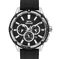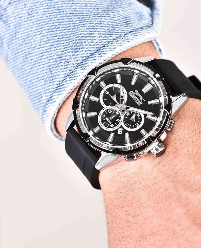 Мужские часы Slazenger SL.09.2090.2.01 представляют собой идеальное сочетание стиля и функциональности. Черный циферблат, обрамленный корпусом из суперметалла диаметром 46 мм и черным безелемБезельВнешний ободок, закрепляющий стекло. В спортивных часах так называется поворотное кольцо с делениями на циферблате, выполняет роль таймера – замеряет отрезки времени на шкале. Неподвижный безель – элемент декора. Однонаправленно вращающийся безель на дайверских часах позволяет фиксировать моменты погружения и выныривания на поверхность. также из суперметалла, но с IP-покрытиемIP-покрытиеМетод ионного напыления. Демонстрирует повышенную устойчивость к истиранию, окислению и химическим веществам. Под воздействием высокого давления и температуры около 1500°C молекулы металла надёжно соединяются с частицами корпуса часов., привлекает внимание своим современным дизайном. Кварцевый механизм обеспечивает точность хода. Силиконовый браслет черного цвета добавляет комфорта и надежности, идеально сочетаясь с цветом циферблата. Минеральное стеклоМинеральное стеклоМинеральное стекло представляет собой искусственно выращенный минерал кварца. Такое стекло отличается особой устойчивостью к повреждениям и царапинам. Уступает по некоторым качествам сапфировому стеклу. защищает часы от царапин, а люминесцентное покрытиеЛюминесцентное покрытиеПозволяет считывать показания времени в темноте. Производители наносят на стрелки, часовые индексы, безель или поверхность циферблата светонакопительный состав, дающий холодное свечение. на стрелках и метках обеспечивает видимость в темноте. Функциональность часов дополнена вторым часовым поясомВторой часовой поясФункция, позволяющая отображать время двух часовых поясов одновременно., 24-часовым указателем времени, календарем даты в районе отметки «4:30» и дня недели. А водозащита до 5 ATM позволяет использовать часы в различных условиях.
