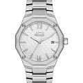 Часы Slazenger SL.09.2149.3.01 — это изящное сочетание классического стиля и современных технологий. Эти женские кварцевые часы привлекают внимание своим серебристым циферблатом, который украшен декоративным рисунком и логотипом бренда. Метки в виде штрихов и римских цифр VI и XII придают циферблату элегантность и читаемость. Окошко даты удобно расположено в положении 3 часа, что позволяет легко следить за числом. Корпус диаметром 34 мм выполнен из суперметалла, который отличается повышенной прочностью. Толщина корпуса составляет 10 мм, что делает часы утонченными и удобными для повседневного ношения. Двенадцатигранный безельБезельВнешний ободок, закрепляющий стекло. В спортивных часах так называется поворотное кольцо с делениями на циферблате, выполняет роль таймера – замеряет отрезки времени на шкале. Неподвижный безель – элемент декора. Однонаправленно вращающийся безель на дайверских часах позволяет фиксировать моменты погружения и выныривания на поверхность. прикреплен на 4 винтах. Люминесцентное покрытиеЛюминесцентное покрытиеПозволяет считывать показания времени в темноте. Производители наносят на стрелки, часовые индексы, безель или поверхность циферблата светонакопительный состав, дающий холодное свечение. на стрелках обеспечивает отличную видимость в темноте. Металлический браслет с раскладной застёжкойРаскладная застёжкаТакой тип застёжки используется только на браслетах из металла. Она никогда не раскрывается полностью, происходит разделение на 2 и более частей. Раскладывающая застёжка снизит вероятность потери часов к минимуму., что обеспечивает надежную фиксацию на запястье и комфорт при носке. Минеральное стеклоМинеральное стеклоМинеральное стекло представляет собой искусственно выращенный минерал кварца. Такое стекло отличается особой устойчивостью к повреждениям и царапинам. Уступает по некоторым качествам сапфировому стеклу. надежно защищает циферблат от царапин и других повреждений, а водозащита на уровне 30WR позволяет не беспокоиться о случайных брызгах воды. Шестигранная заводная головка добавляет оригинальности и удобства в управлении настройками. Эти часы станут прекрасным аксессуаром для женщин, ценящих классический дизайн, качество и надежность, которые не подвластны скоротечным модным тенденциям.